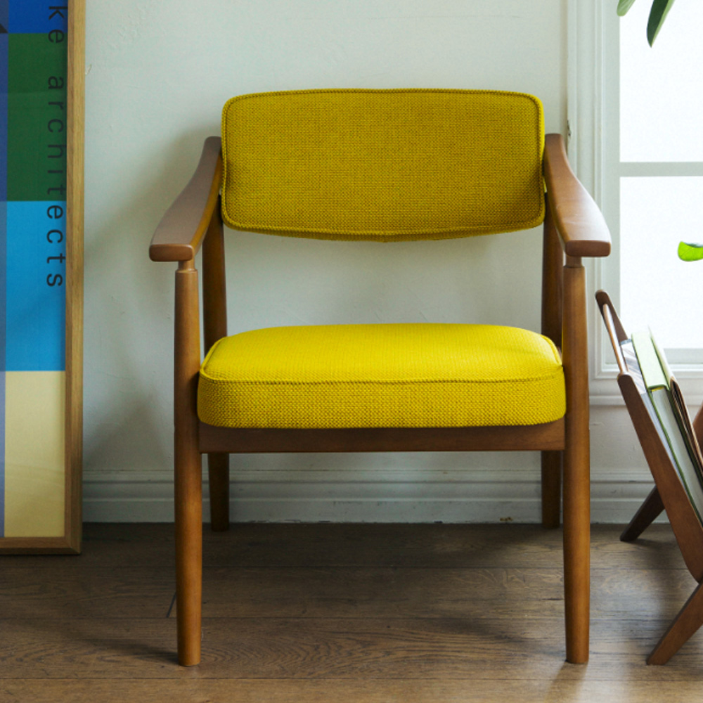 1973 年 KARIMOKU 在陸續推出客廳家具後,將延伸商品線至餐廳家具,這款 D Chair 正是餐廳系列的代表作品,略低的椅座高度非常符合日式空間使用,微妙的高度與較寬的椅座,在現代空間中,卻同時適合客廳、餐廳或當成閱讀椅來使用,而 D Chair 微彎的扶手設計以 KARIMOKU 精湛的木作技術完成,細膩的作工保留純粹的手感,後高前低的扶手也是符合人體工學的設計。