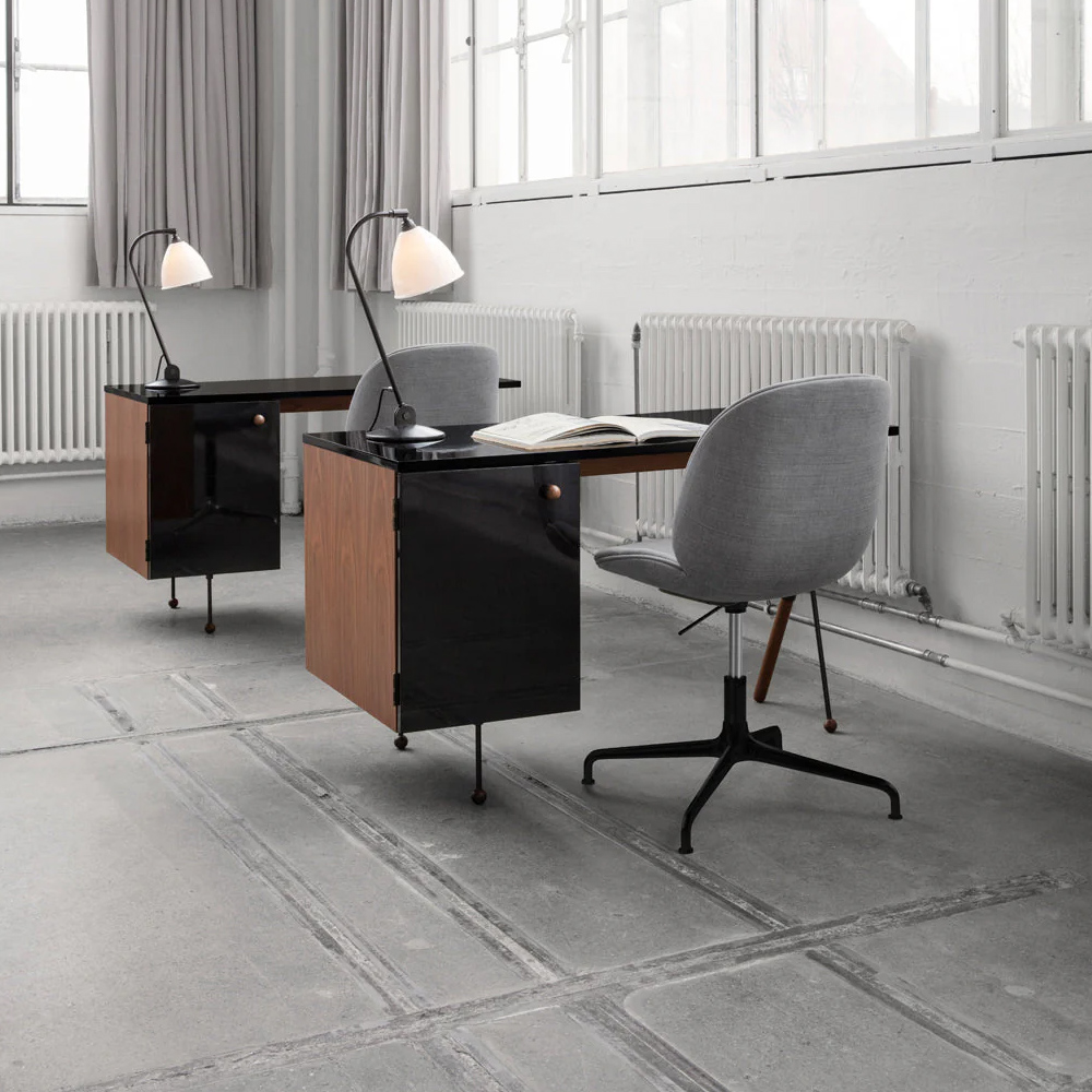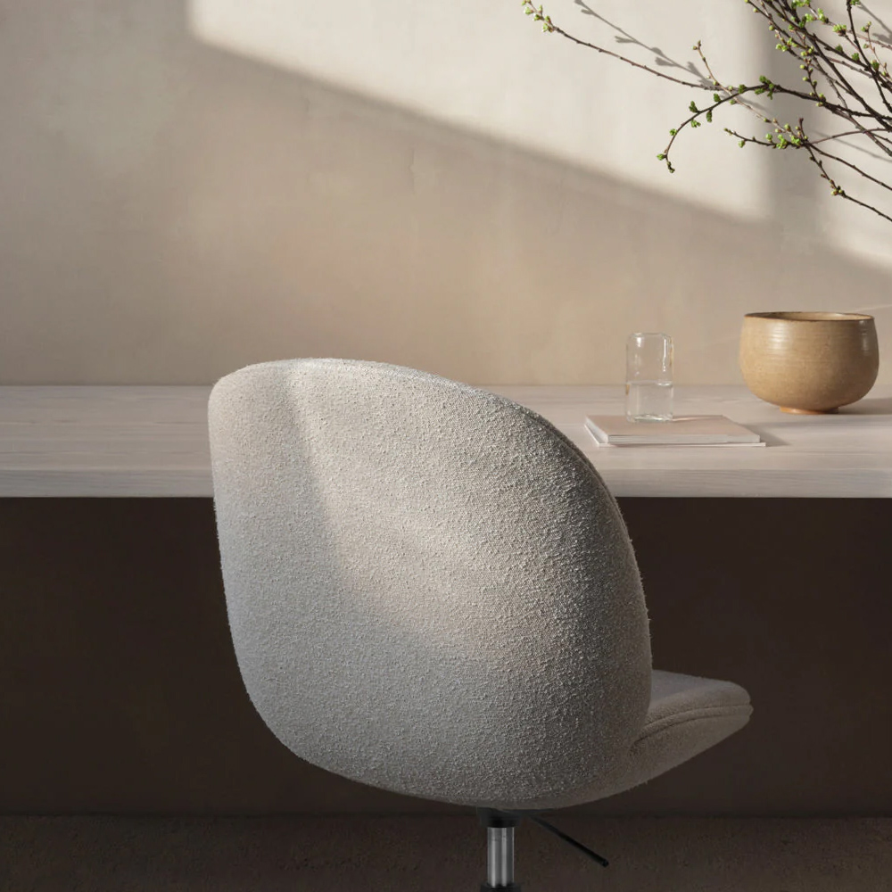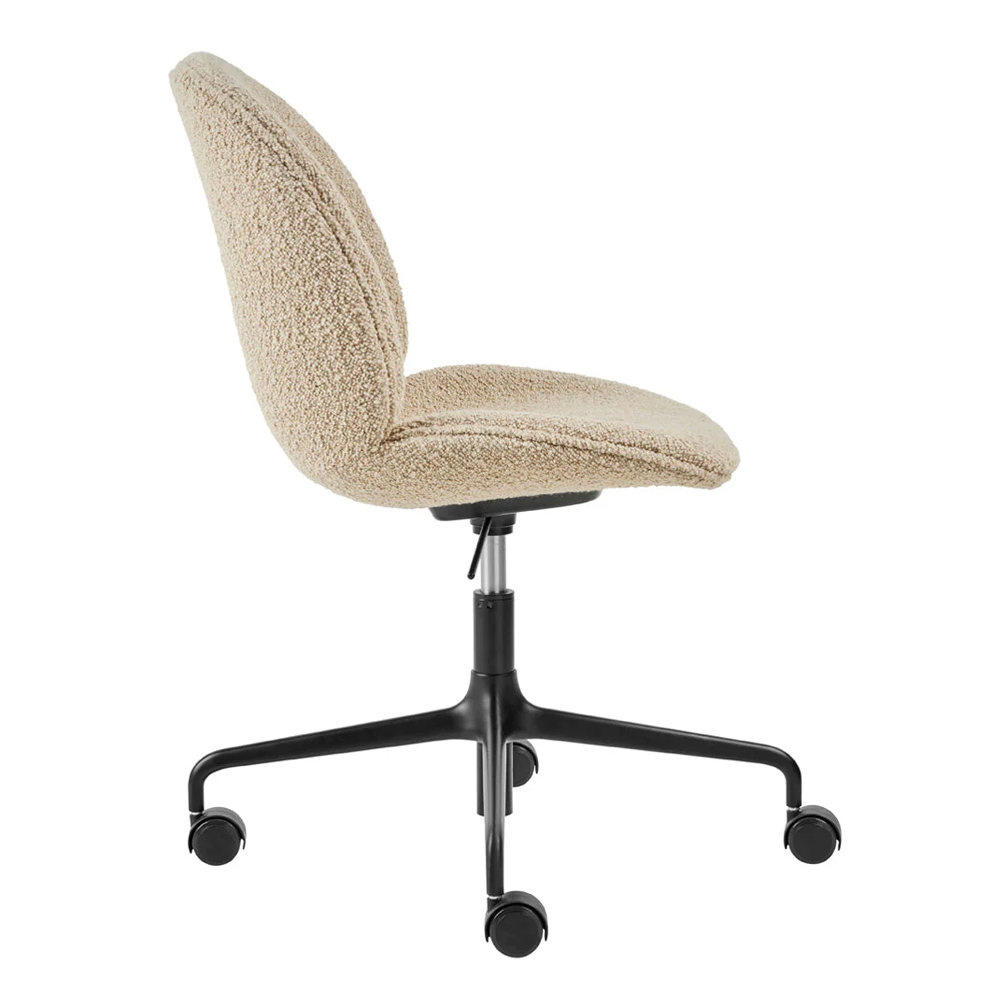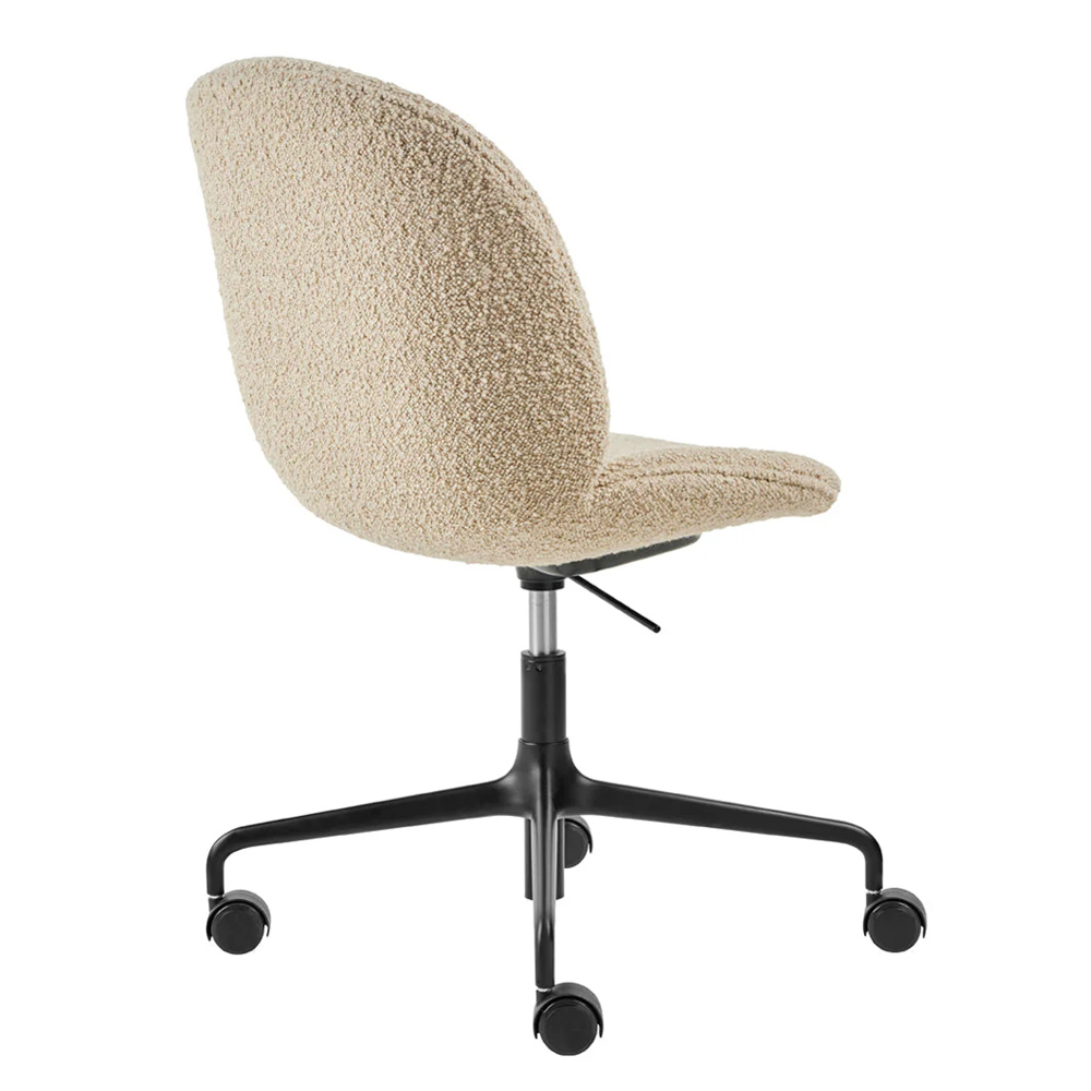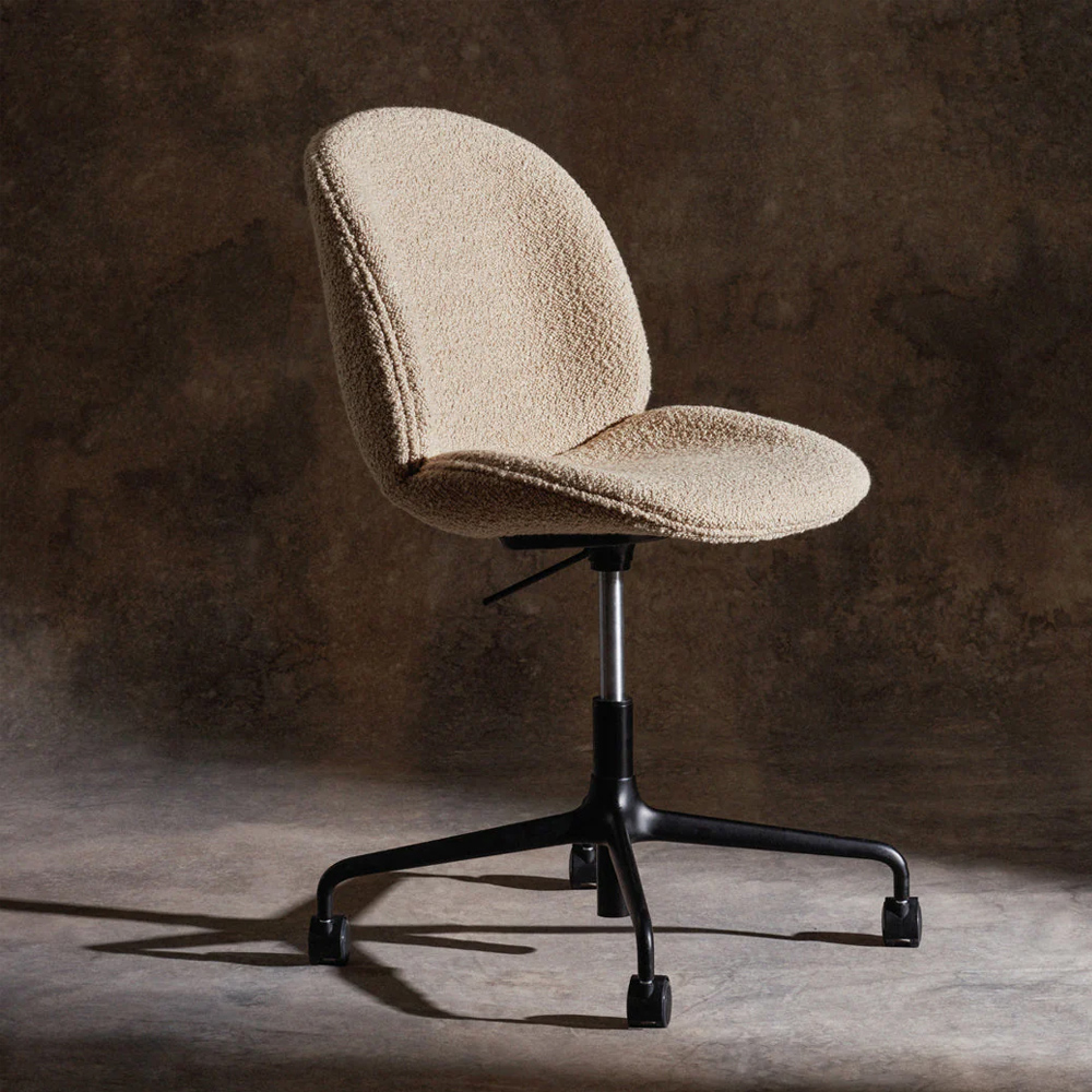 丹麥品牌 Gubi 於 2013 年發表的 Beetle 單椅與吧台椅,設計師是來自丹麥與義大利的建築師組合 GamFratesi,靈感源自細微觀察下甲蟲優美而渾然天成的線條,坐墊則增加了乘坐時的舒適度,賦予 Beetle 低調而雅致的設計感。