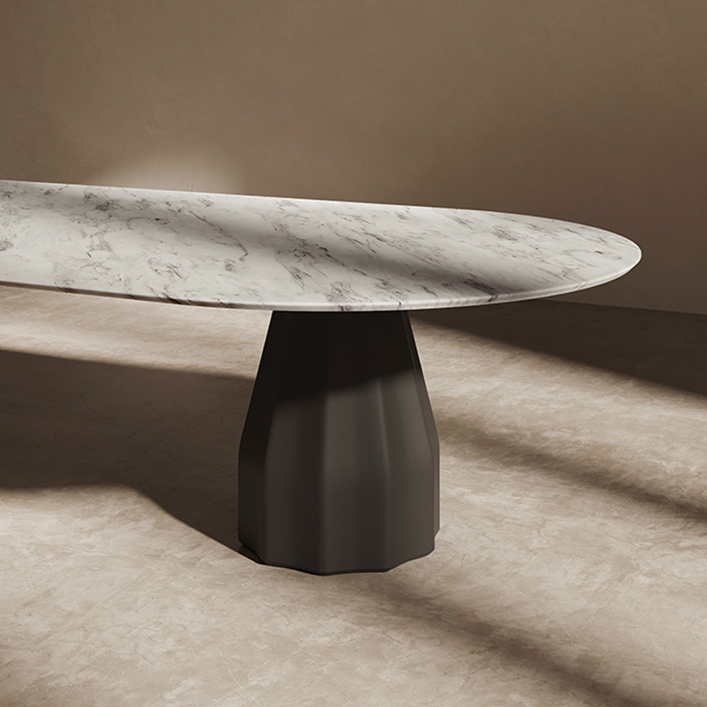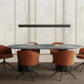 在桌面選擇上,Viccarbe 將大理石引入系列,進一步彰顯高端質感。大理石天然的獨特色澤與紋理,為每張 Burin 桌子帶來獨一無二的深度與氣韻。其沉靜的力量與雕塑般的存在感,使空間散發出精緻且耐看的氛圍。無論是大尺寸的桌面,用於營造莊重而優雅的會議氛圍;還是小尺寸的款式,適合現代居家、酒店大廳或過渡空間,大理石都能與木材或陶瓷等其他高級材質完美搭配,帶來平衡、個性與洗練。