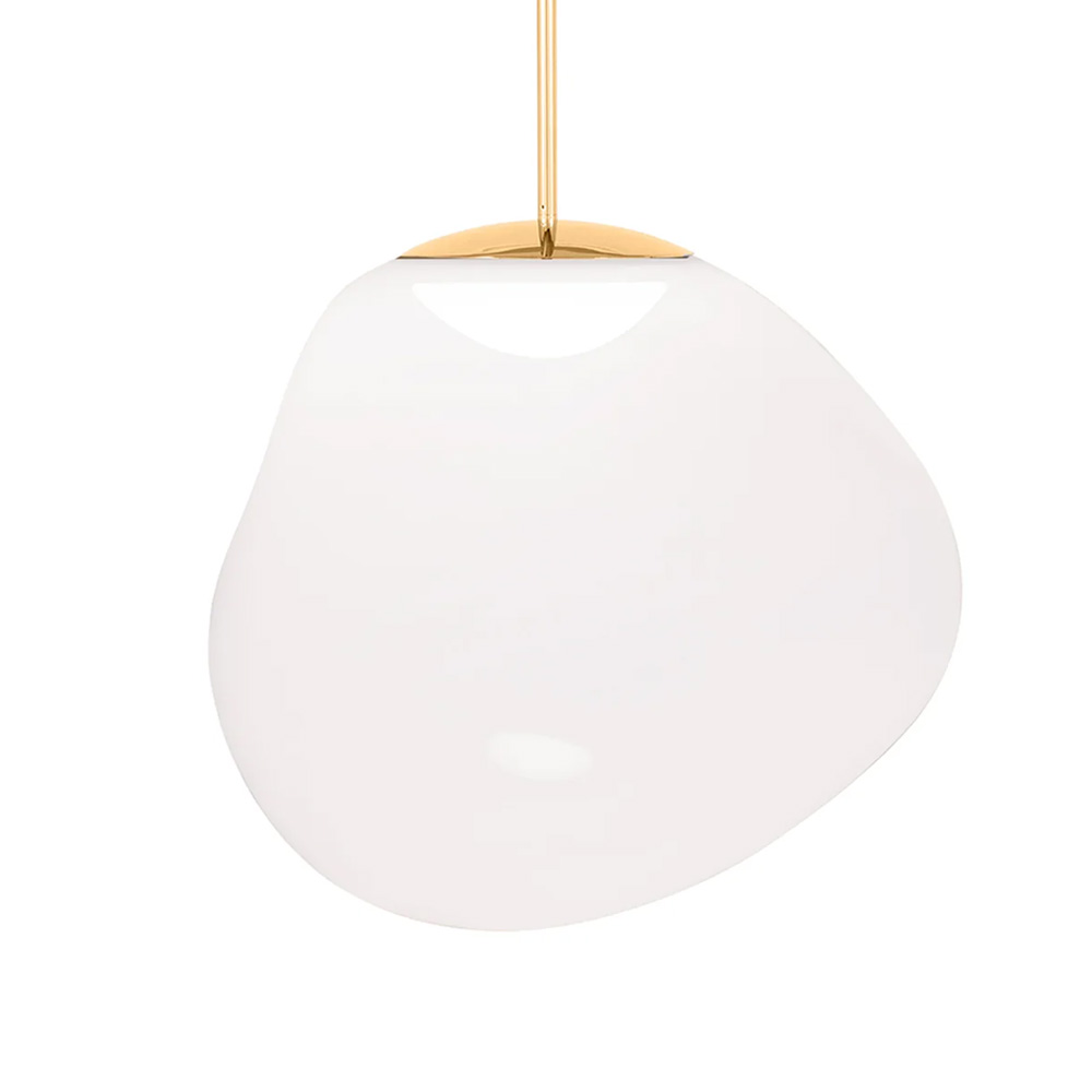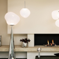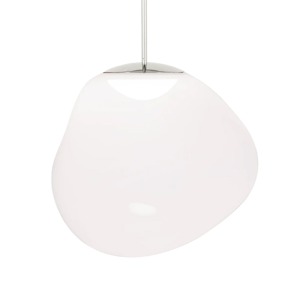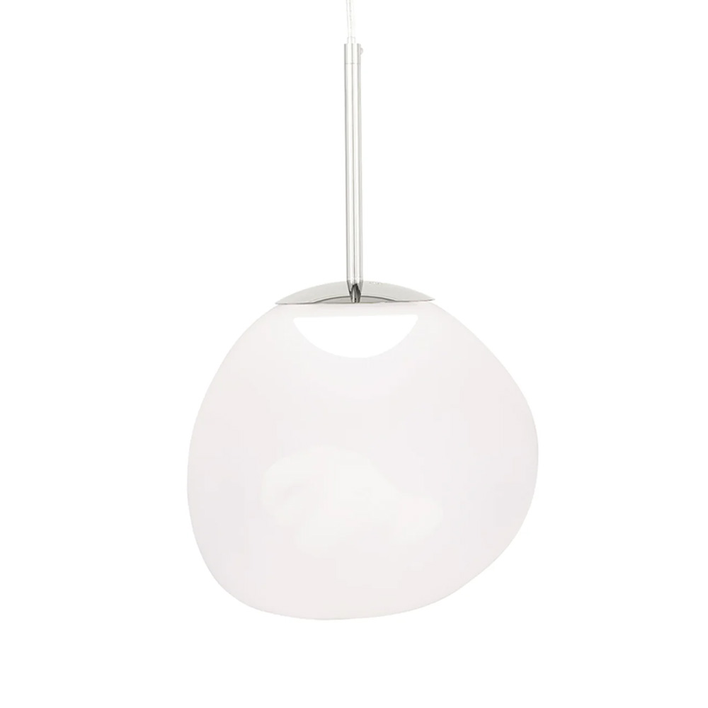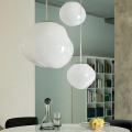 Melt Opal 吊燈,跳脫出璀璨華麗的經典銀河款式,更顯空靈的內斂氣韻,單盞或是多盞錯落吊掛都能讓室內增添精緻光影氛圍,有兩款尺寸與兩種金屬色頂蓋選擇,也讓室內設計有更多搭配的無限可能性,適合用在各種環境與空間中。