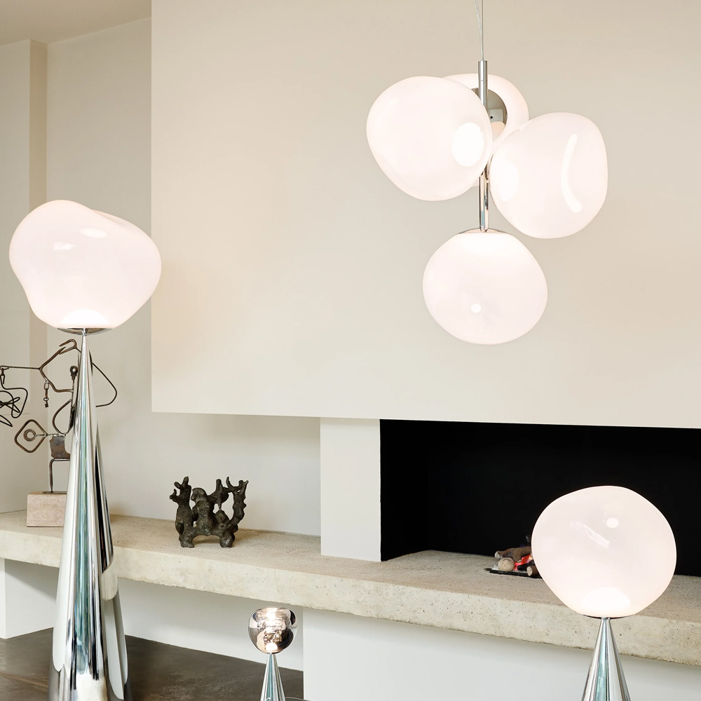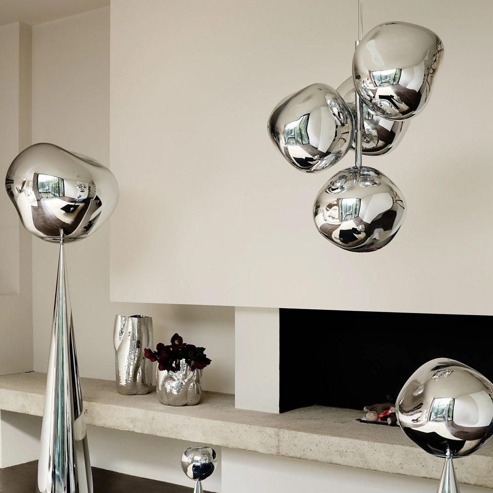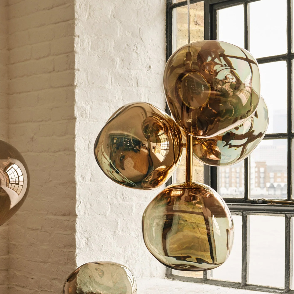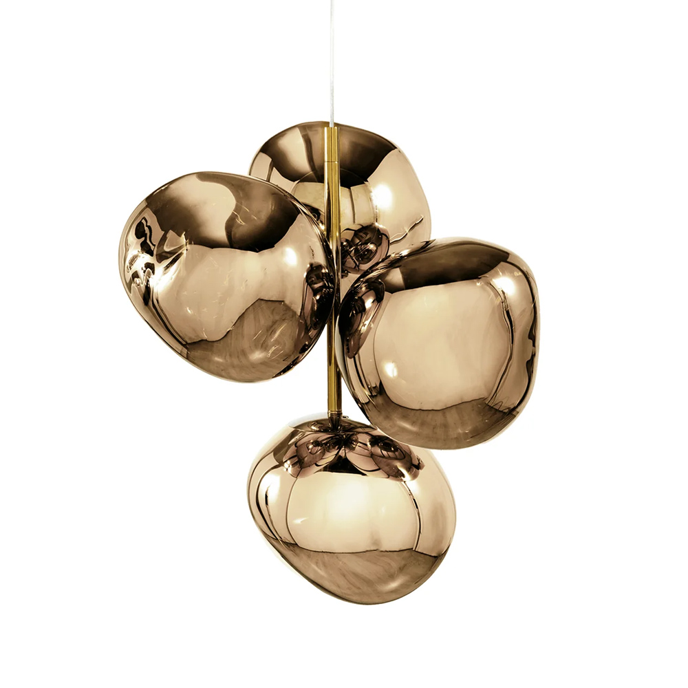 Tom Dixon 的 Melt 系列以流動造型與創新工藝為核心,展現燈具開關間的多層次魅力。Melt Chandelier Mini 吊燈由 4 個聚碳酸酯燈罩組成,內層採用高科技真空電鍍技術,共推出紅銅、銀色、金色與煙燻色四種獨特色調。開燈時,燈罩內部結構反射絢麗光影;關燈時,金屬鏡面光澤優雅依舊,無論狀態如何都吸引目光。Melt Chandelier Mini 以精巧尺寸契合現代空間,既是視覺焦點,也能營造細膩光影,為空間增添設計美感與層次感。