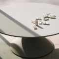 在工藝與材質上,Clay 展現了 Desalto 持續探索的創新精神。除了傳統精緻的塗裝外,桌面亦可選擇火山石材質──透過火山礦物與石灰基質的結合,形成獨特且可完全回收的環保塗層,兼具耐用性與美學價值。每件桌子皆由工匠以手工批盪工藝完成,帶來細緻的紋理與獨一無二的表面效果,回應高端用戶對於獨特性的追求。