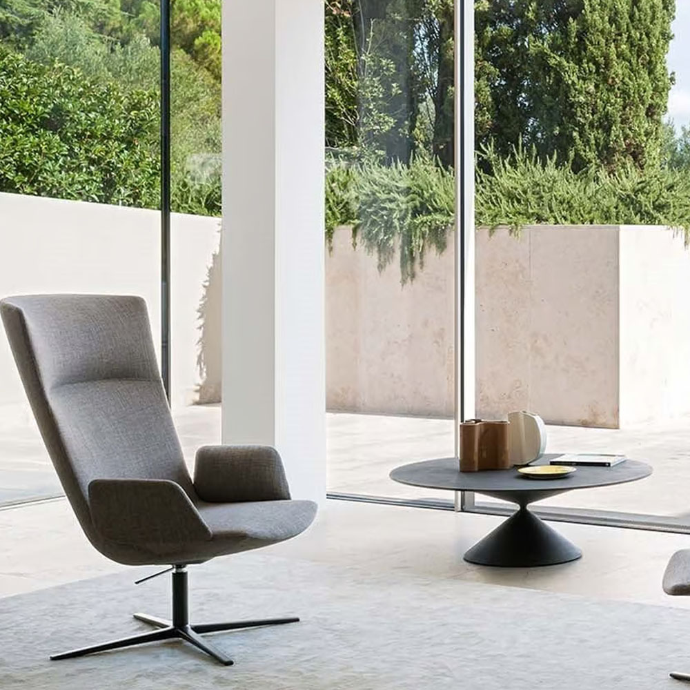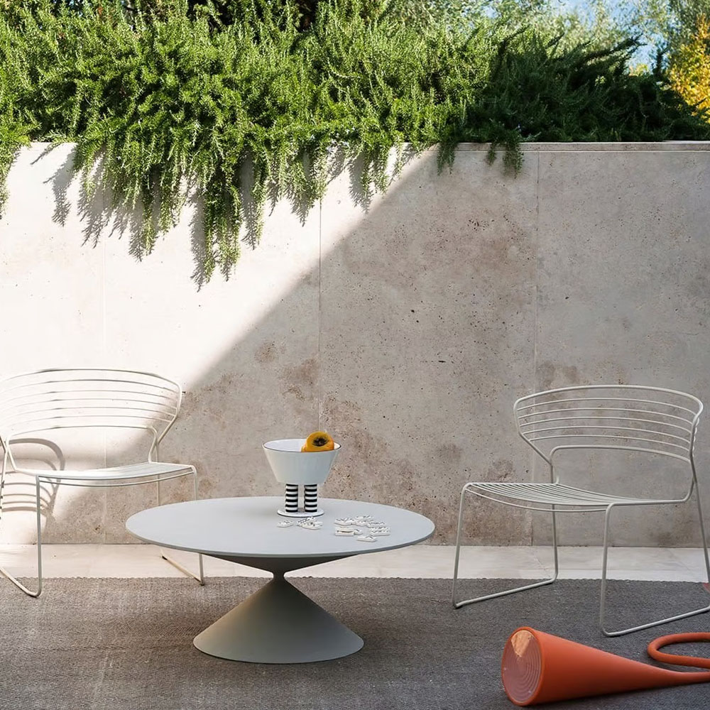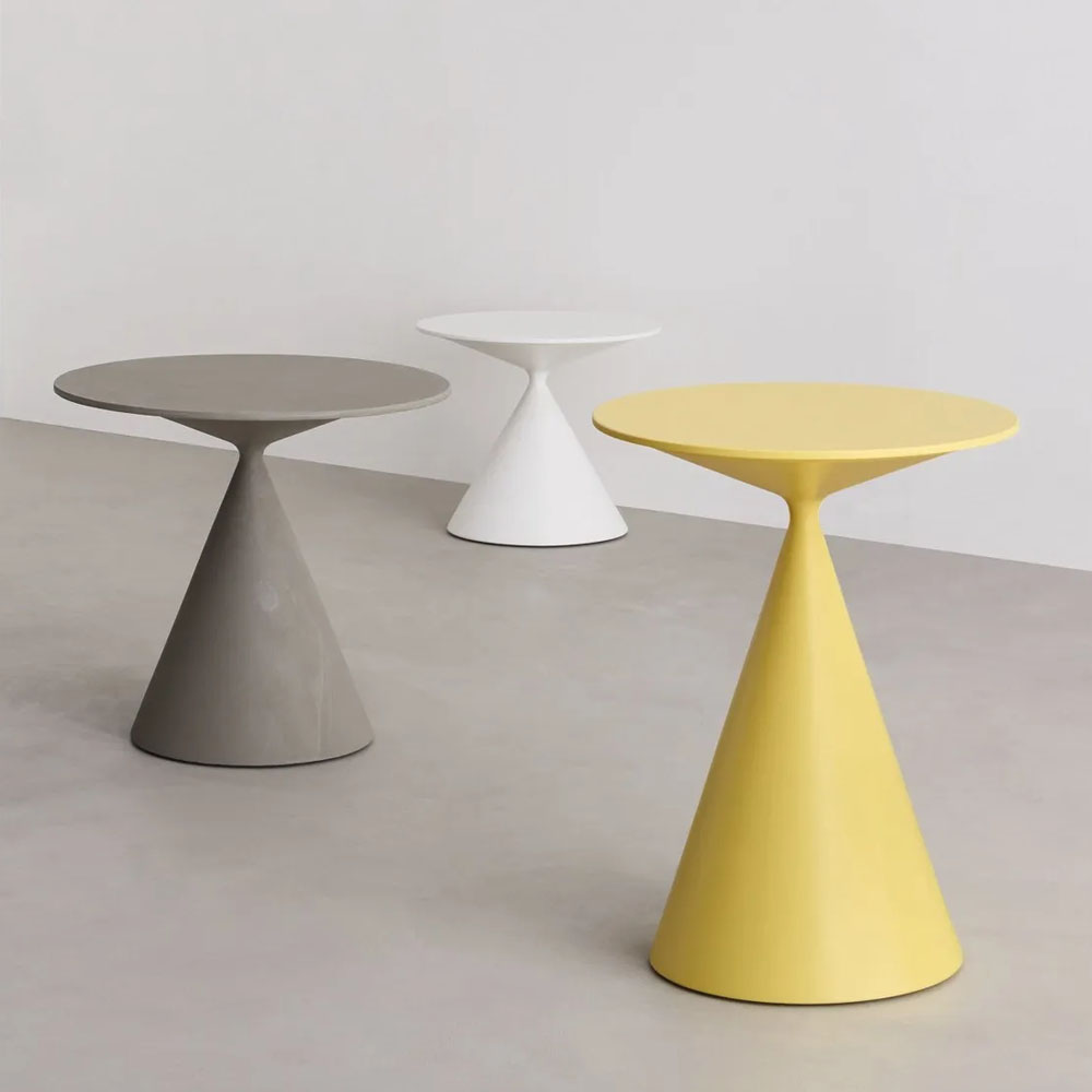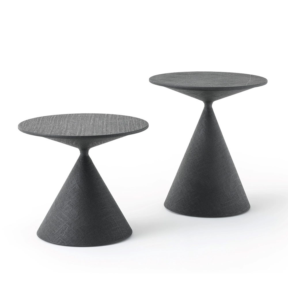 上下兩各圓錐體的交匯,從量體極致緊縮至點的大膽相遇,在明顯不平衡之中克服重力,成就出兼具風格與實用性的作品,Clay 展現了 Desalto 卓越的工藝品質與設計師 Marc Krusin 精準獨到的設計眼光。