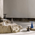 上下兩各圓錐體的交匯,從量體極致緊縮至點的大膽相遇,在明顯不平衡之中克服重力,成就出兼具風格與實用性的作品,Clay 展現了 Desalto 卓越的工藝品質與設計師 Marc Krusin 精準獨到的設計眼光。