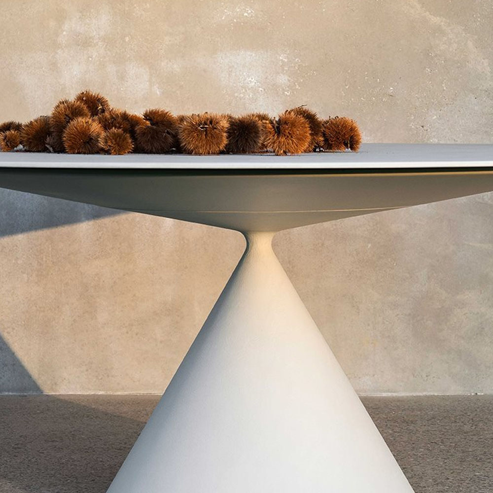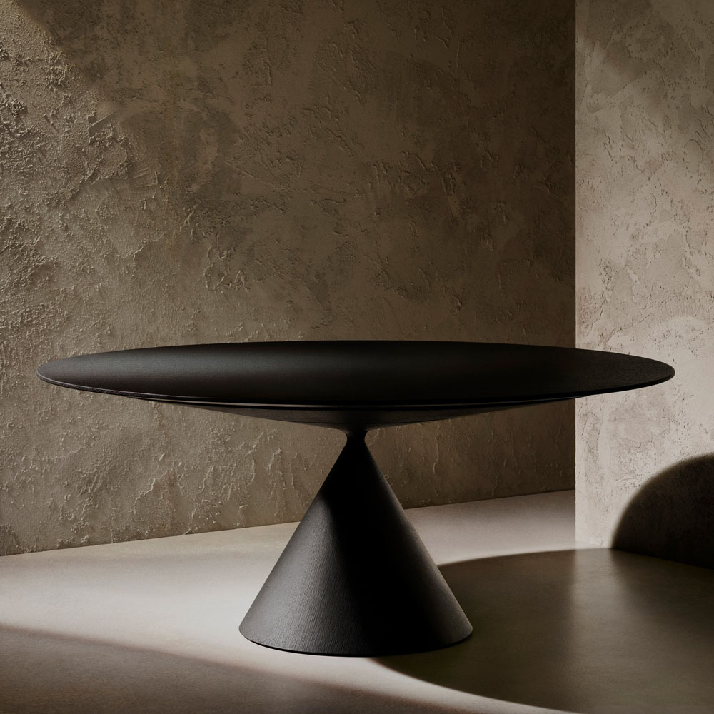 上下兩各圓錐體的交匯,從量體極致緊縮至點的大膽相遇,在明顯不平衡之中克服重力,成就出兼具風格與實用性的作品,Clay 展現了 Desalto 卓越的工藝品質與設計師 Marc Krusin 精準獨到的設計眼光。