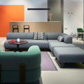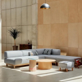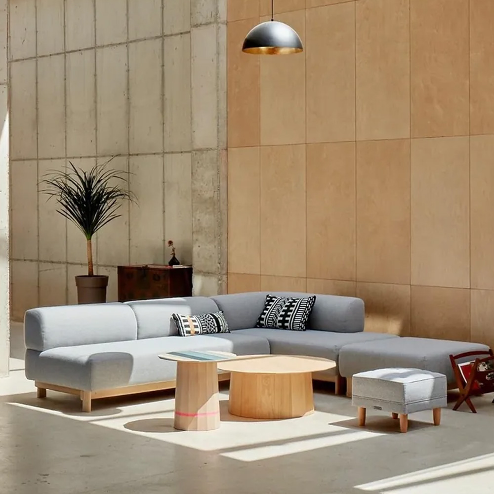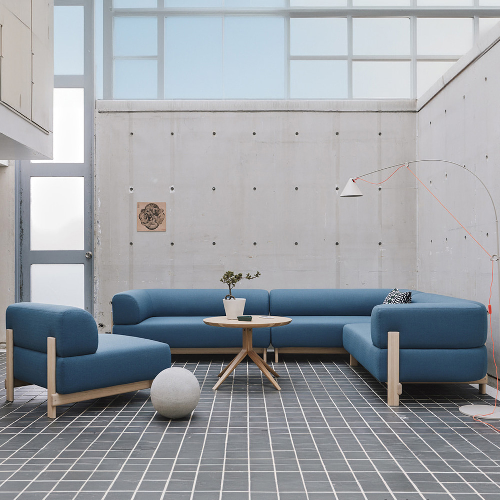 Elephant Sofa 系列名字取源於它的形狀。厚實的靠墊以及手臂零件連接在如同大象般壯碩身軀的本體底座上。又彷彿象鼻般的木腳配置在底座,打造出既優雅又穩健的形狀。