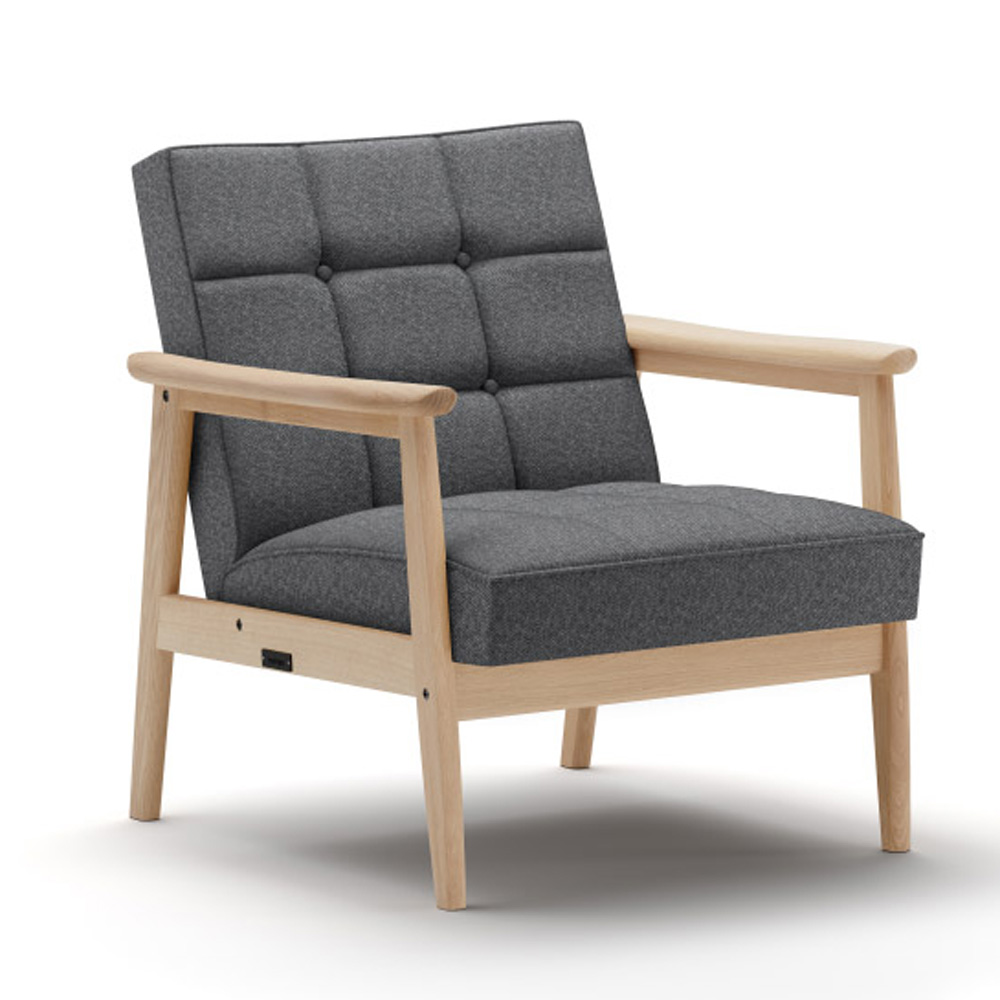 K Chair 是 1962 年 KARIMOKU 首次研發的自有品牌商品,原是為了因應外銷市場而設計的單人沙發款式,結構輕巧且易於運送,嚴謹的結構設計只需要簡單的組裝即可完成,K Chair 在當時就採用生長期短的橡膠木,溫暖的色澤與天然木紋,相當美觀且符合環保概念,再由 KARIMOKU 數十年精湛的的木工技術與木工師傅的純熟手工製作出椅架的優美線條。