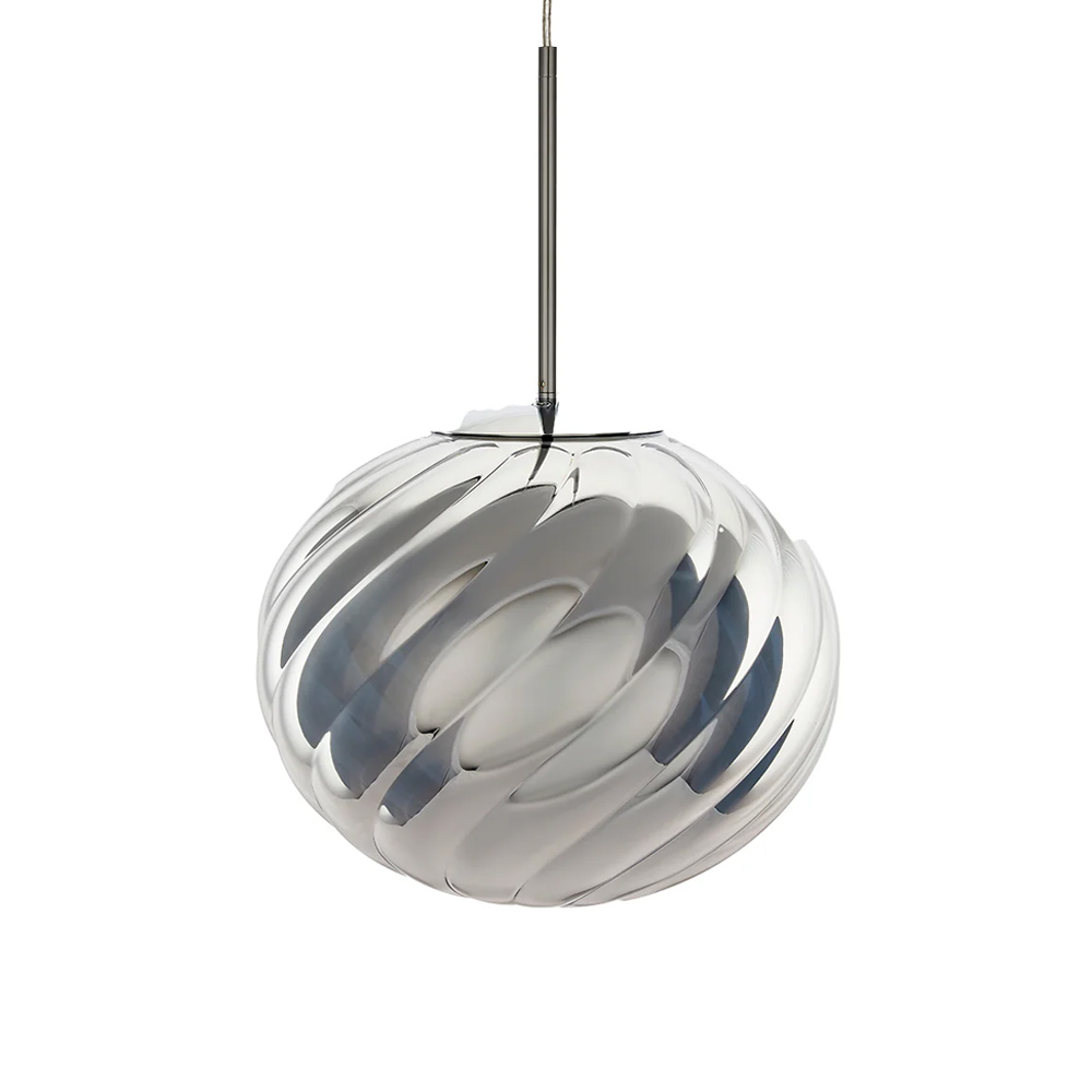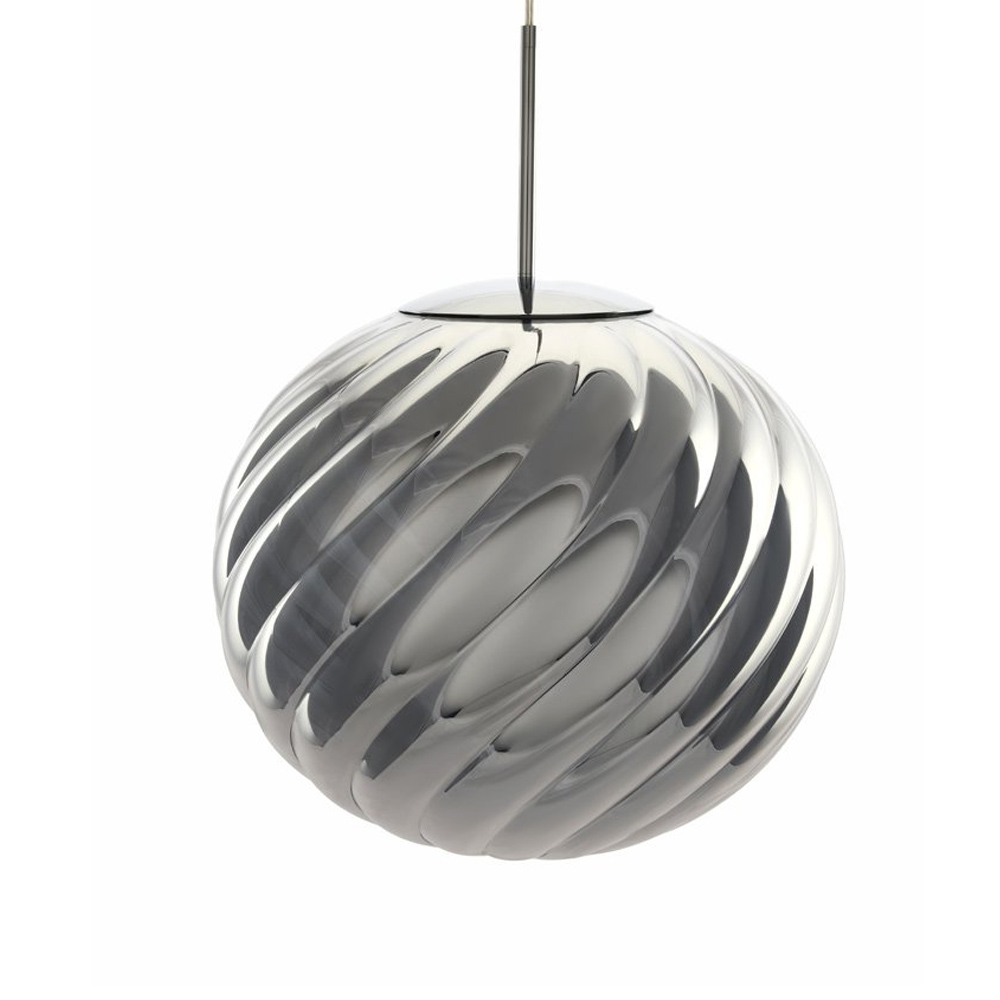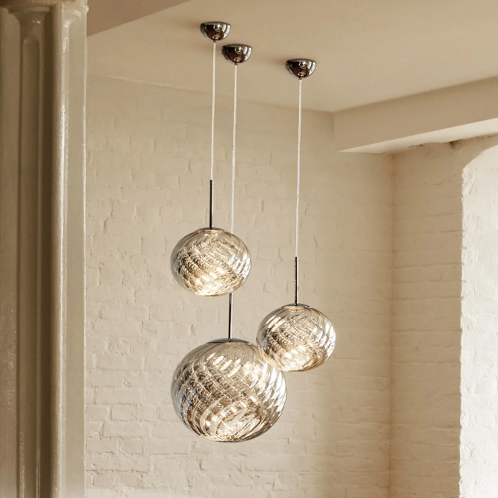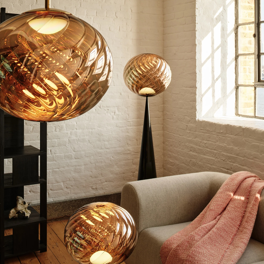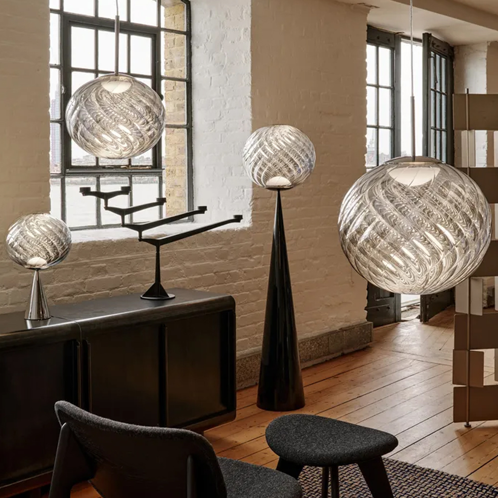 Tom Dixon Whirl 系列以歐普藝術為靈感,螺旋造型在光線的映照下展現出層層鏡面反射與抽象紋理,宛如懸浮於空間的藝術雕塑,燈罩以輕盈卻堅韌的聚碳酸酯製成,以注射吹塑與真空電鍍工藝製作,打造出半鏡面的獨特光澤。光線在燈罩表面交錯反射,產生如同虹彩般的流動光澤,隨著視角移動而不斷變化,為空間增添細膩而動態的表情,造就 Whirl 系列獨一無二的質感。