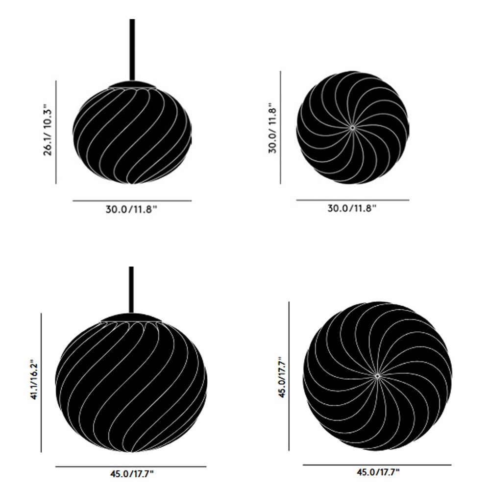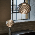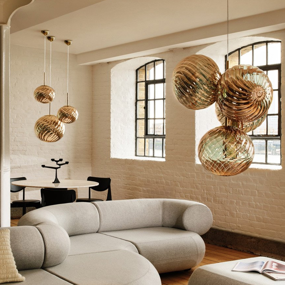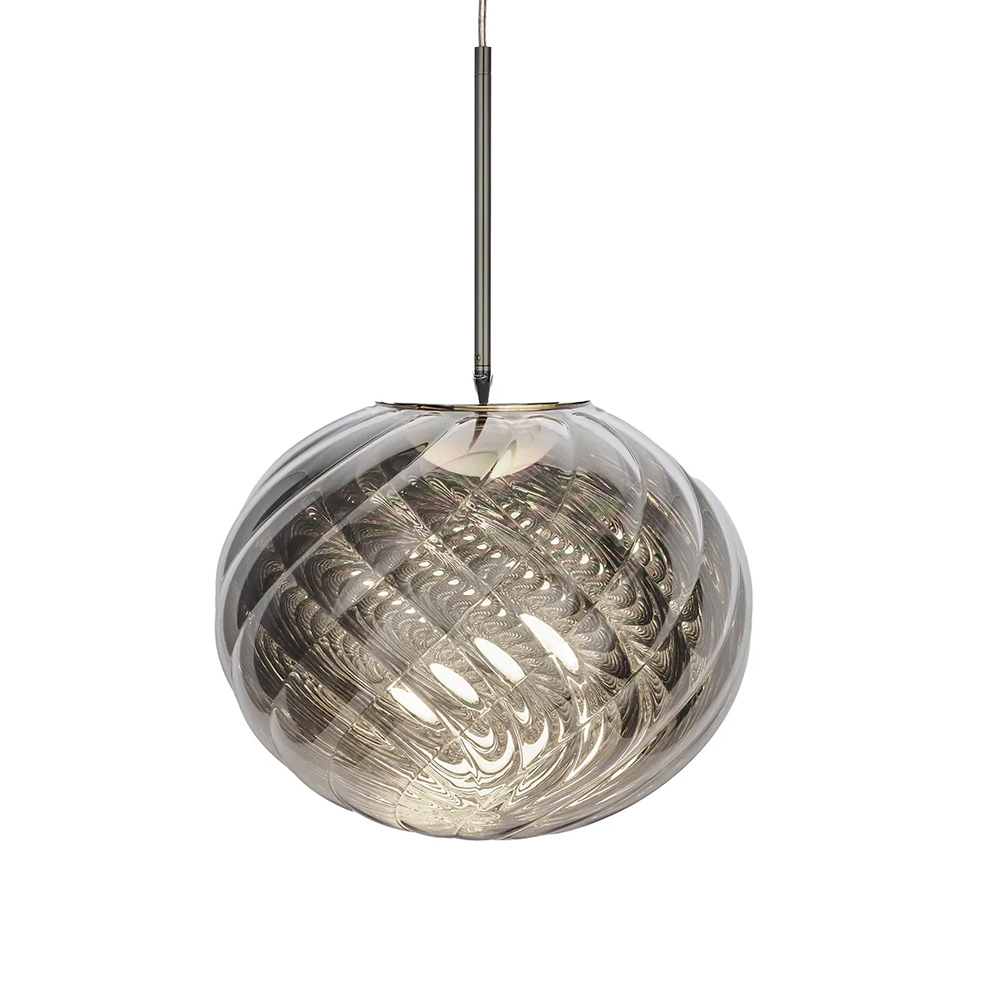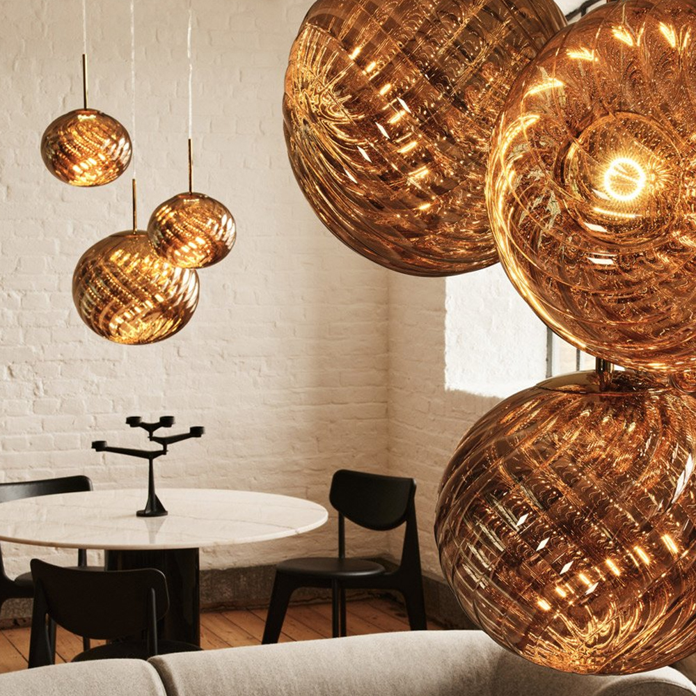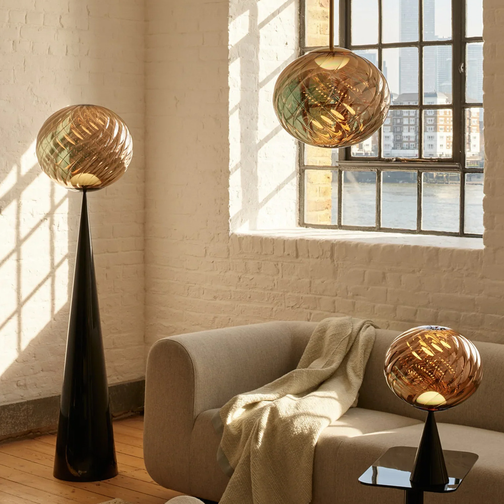 Tom Dixon Whirl 系列以歐普藝術為靈感,螺旋造型在光線的映照下展現出層層鏡面反射與抽象紋理,宛如懸浮於空間的藝術雕塑,燈罩以輕盈卻堅韌的聚碳酸酯製成,以注射吹塑與真空電鍍工藝製作,打造出半鏡面的獨特光澤。光線在燈罩表面交錯反射,產生如同虹彩般的流動光澤,隨著視角移動而不斷變化,為空間增添細膩而動態的表情,造就 Whirl 系列獨一無二的質感。