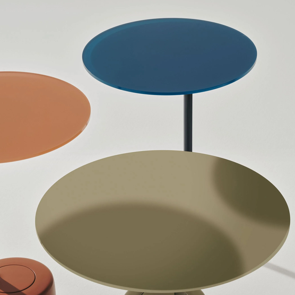 Oell 茶几與咖啡桌以靈活多變的設計,適用於商業空間、酒店及居家環境。系列提供兩種高度與兩種桌面直徑,並搭配多樣化材質與色彩選項,讓搭配更自由,無論融入空間或成為視覺焦點皆自成風格。雕塑感金屬底座與立柱採用擴充色系,呈現更具表現力的色彩層次;桌面則可選擇強化彩色玻璃、MDF 或瓷質石材等版本,兼具質感與耐用性。考量長期使用的可持續理念,Oell 結構可完全拆解,便於維護與回收。