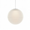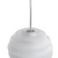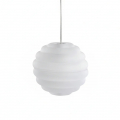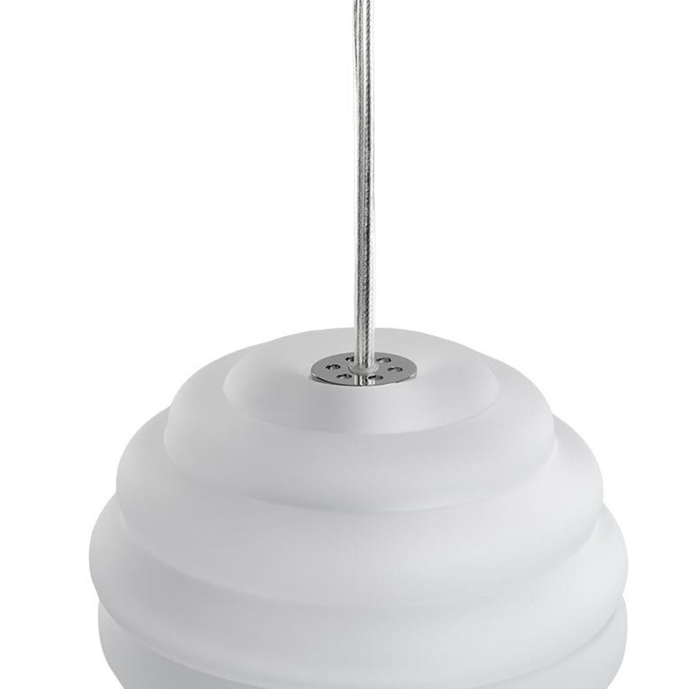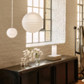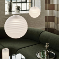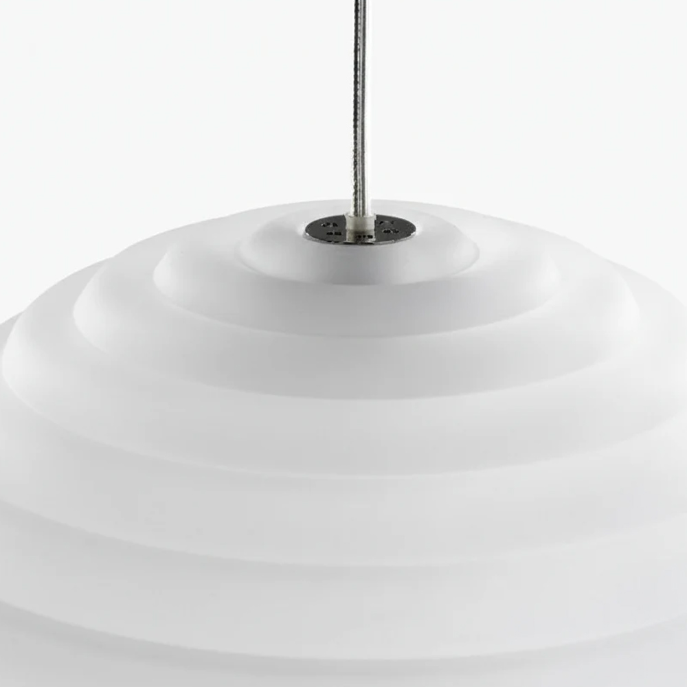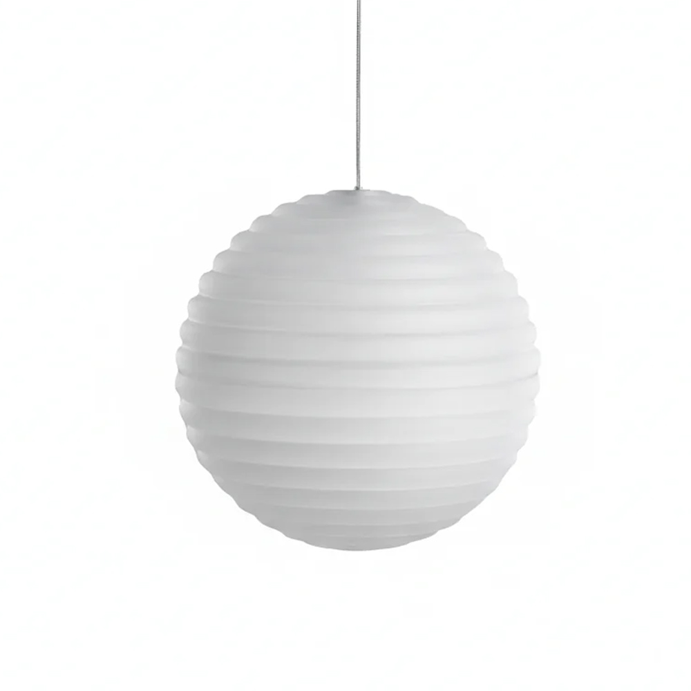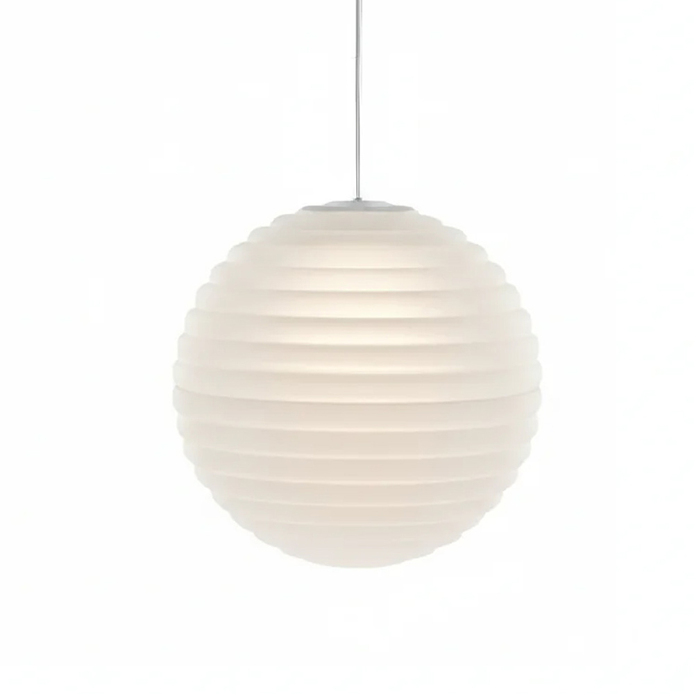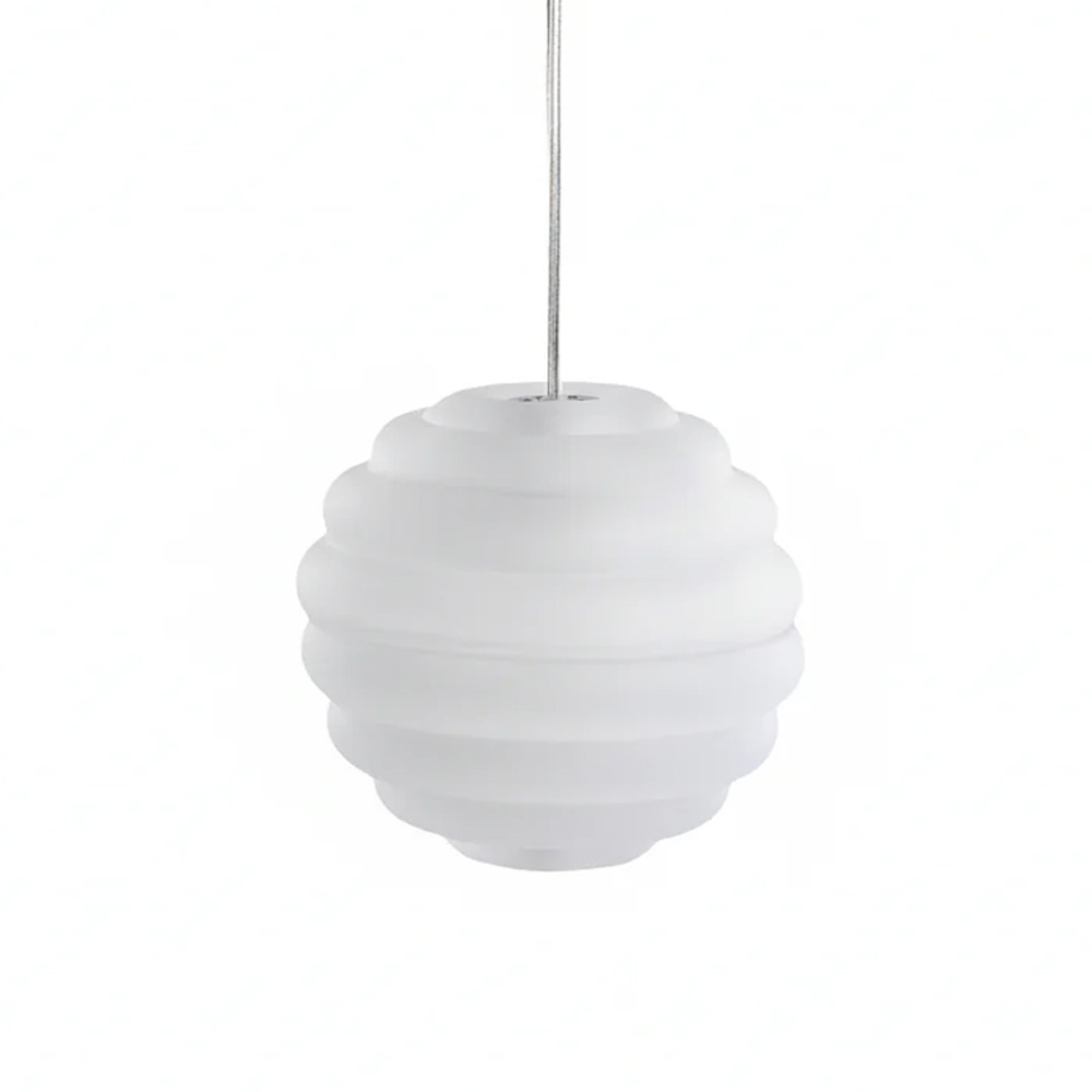 靈感取自海上浮標的圓潤造型,Tom Dixon Press Frosted Sphere 吊燈以厚實壓製玻璃搭配噴砂霧面處理,將原本通透的玻璃轉化為細膩柔霧。當光線透過層層線條折射,散發出溫暖的光暈,既能單盞吊掛,營造靜謐氛圍,也能多盞組合,形成立體而雕塑感的視覺焦點。