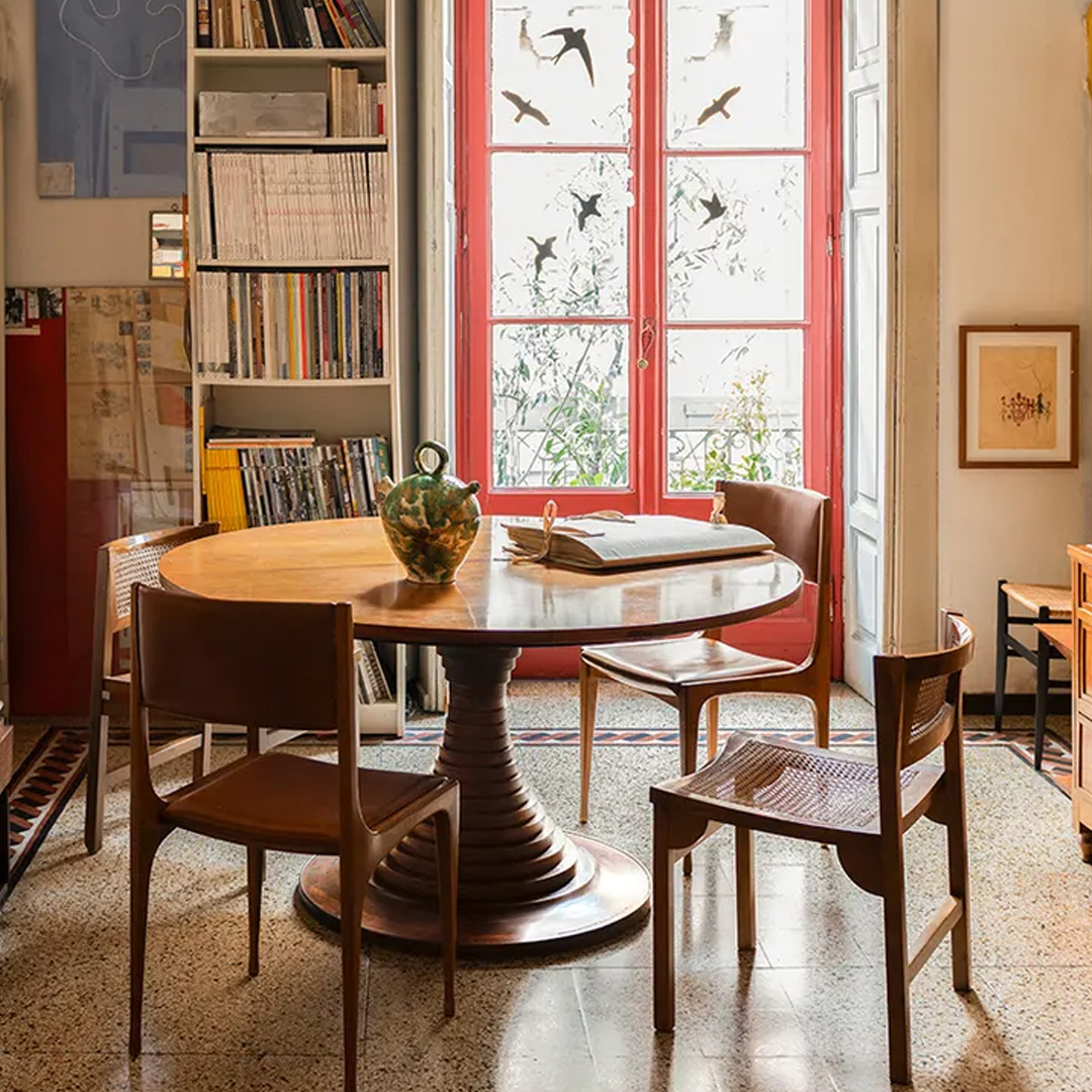由義大利建築師 Carlo De Carli 於 1963 年設計的 Tavolo a Dischi 餐桌,是功能與形式完美融合的代表作。這張桌子以其創新的結構設計與精緻的材料表現,展現了義式中世紀現代主義的優雅精神。