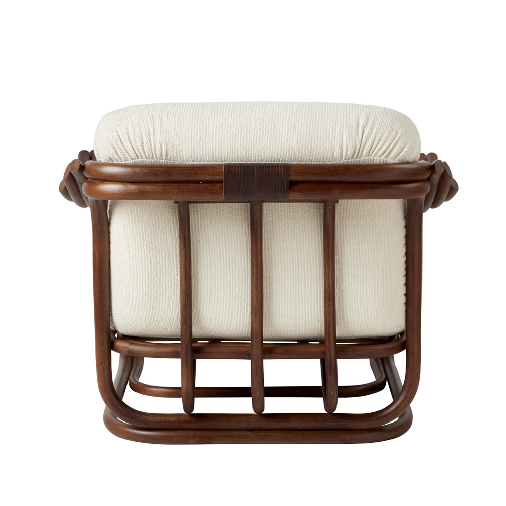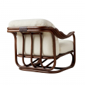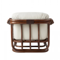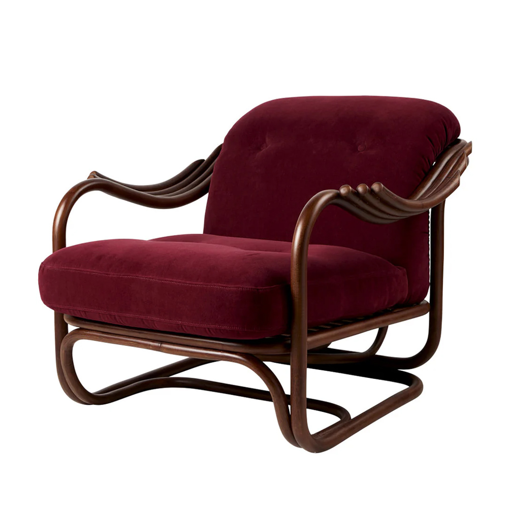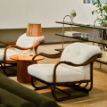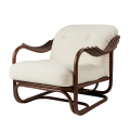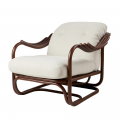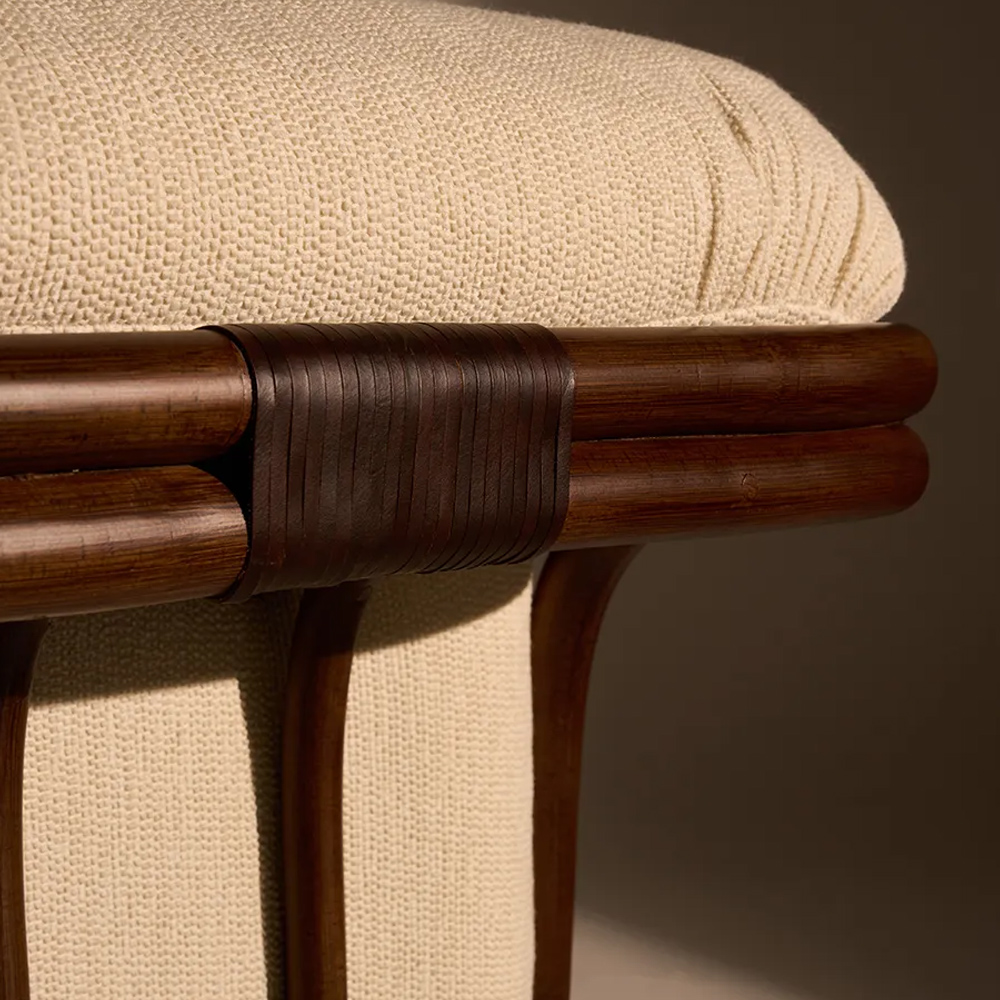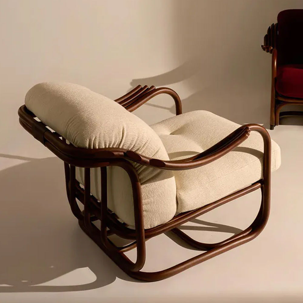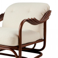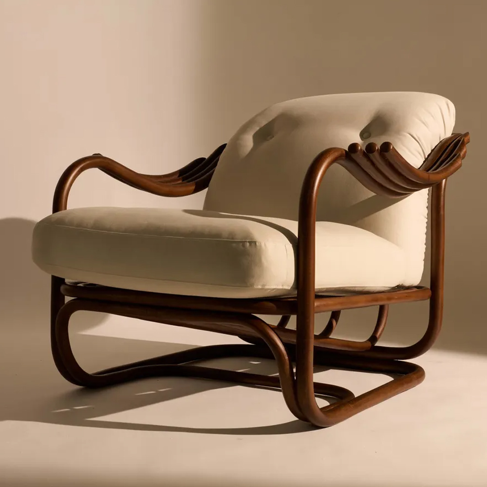 椅身幾乎完全由蒸氣彎曲的藤條手工製成,每根藤材皆經精挑細選,以確保直徑、色澤與質感的一致性。彎曲與組裝過程需仰賴極高的手工技藝,使結構在視覺上輕盈流暢,卻又堅實穩定。其獨特的扶手設計以三根不同長度的藤條並列成形,展開如翅膀般的弧度,既具雕塑感,也帶來包覆與支撐的舒適體驗。配備兩個深厚可拆卸的坐墊,Poltrona Tria 提供柔軟與支撐兼具的放鬆感,讓人自然地沉浸於悠閒時光。天然藤材的紋理與溫潤色調,為室內空間帶來一抹自然氣息,無論置於客廳、書房或日光室,都能與現代、經典或波西米亞風格完美共鳴。