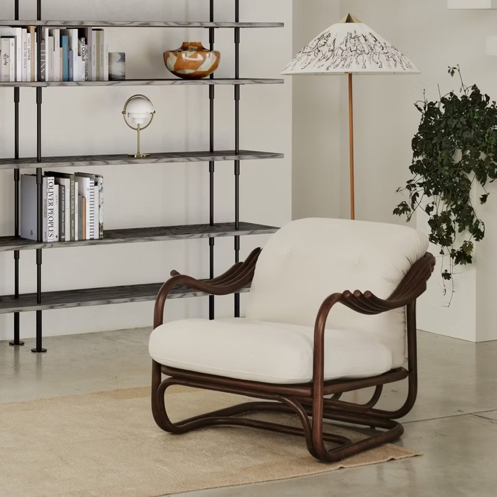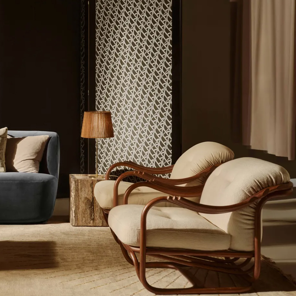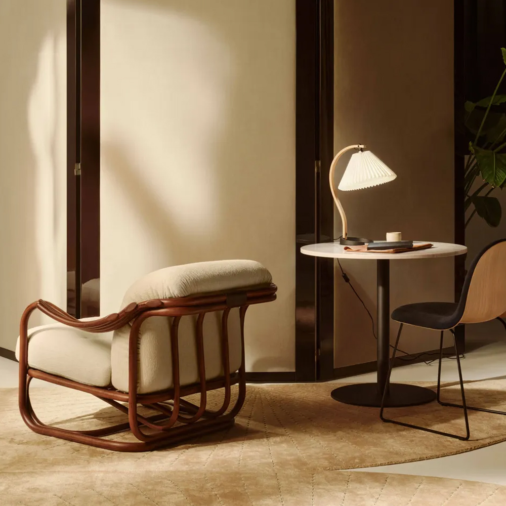 誕生於 1973 年,Poltrona Tria Lounge Chair 是義大利建築師 Carlo De Carli 首次以藤材創作的經典之作。這張休閒椅以其優雅的曲線與舒適的坐感,展現藤編家具的自然魅力與結構潛能。五十年後,GUBI 將這款傳奇設計重新引入現代生活,成為品牌 Carlo De Carli 系列中最具代表性的作品之一。