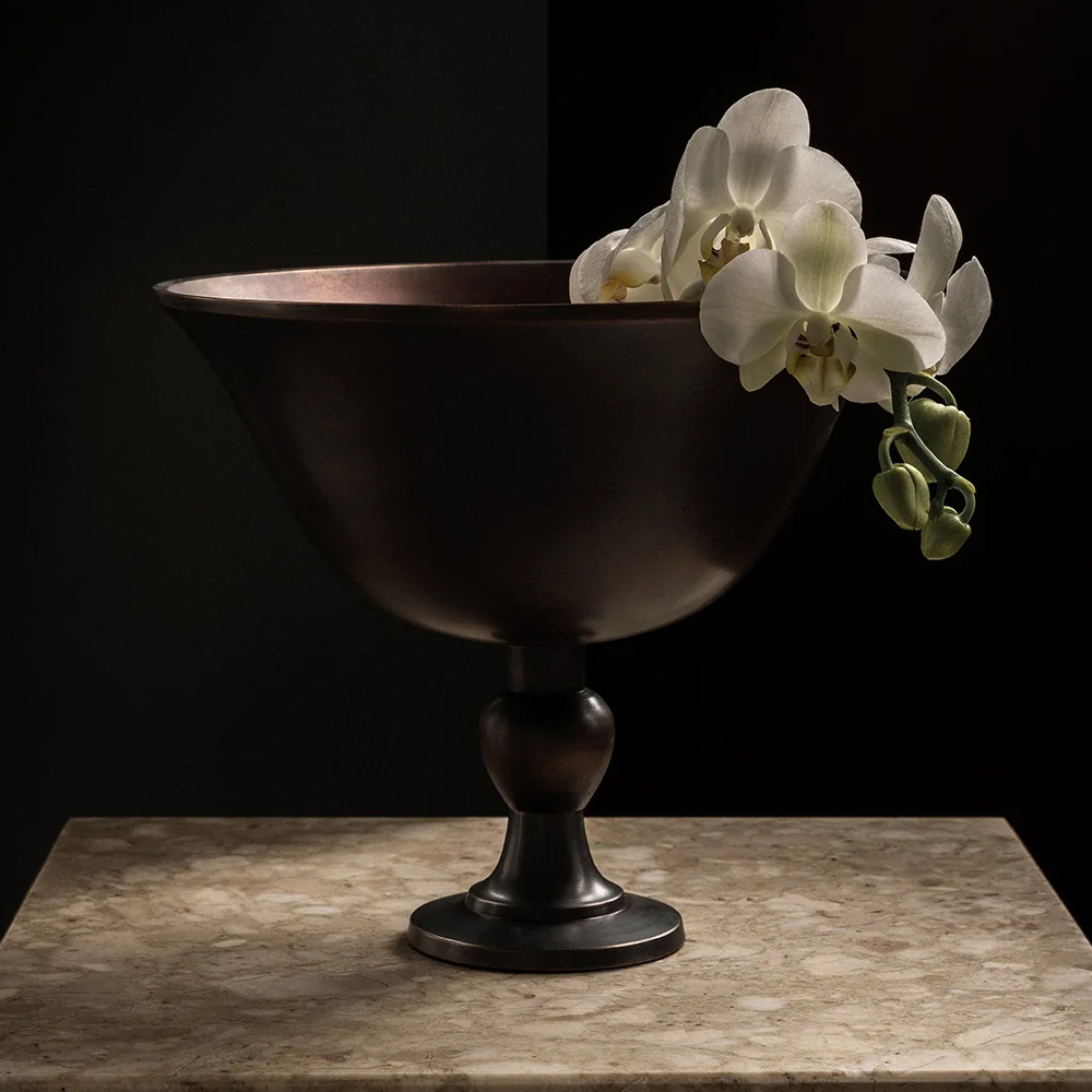 Pavot Bowl 向古典工藝致敬,透過極簡的設計語言重新演繹永恆的造物之美。柔和的弧線與立體的高腳結構,搭配溫潤的古銅質感,使作品在古典氣韻與現代感之間取得完美平衡。