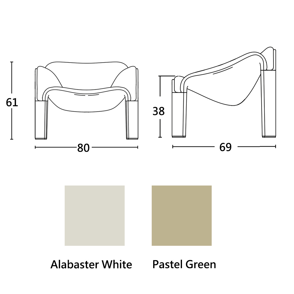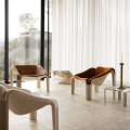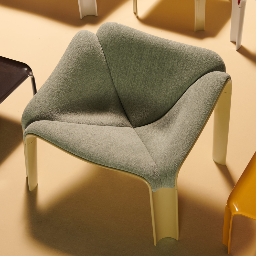 F300 最初以玻璃纖維與注塑聚氨酯製成,其流線造型提供人體工學的支撐與極高的放鬆感。如今的版本保留了這份「一坐即放鬆」的特質,同時更環保、更耐用,也更符合現代生活的多樣環境。
