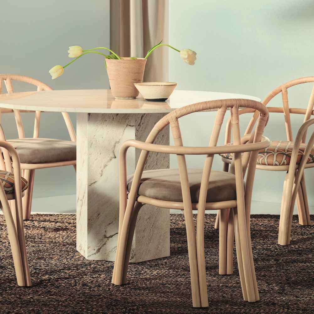 從餐廳到客廳、從居家到酒店空間,Bistra 以靈動輕巧的姿態演繹現代藤編的雕塑性語言。整個系列展現自然與工藝的細膩平衡,以沉穩姿態講述一段從大地生長而出的詩意設計。
