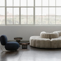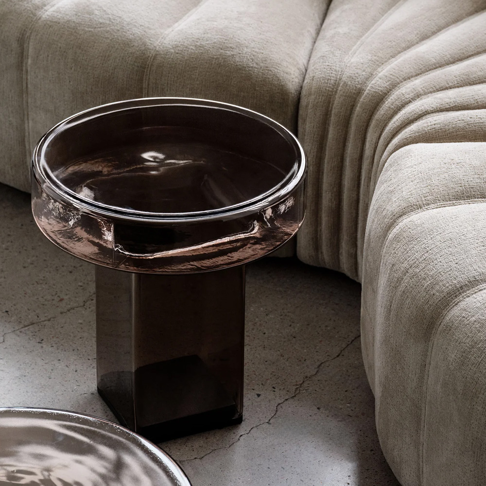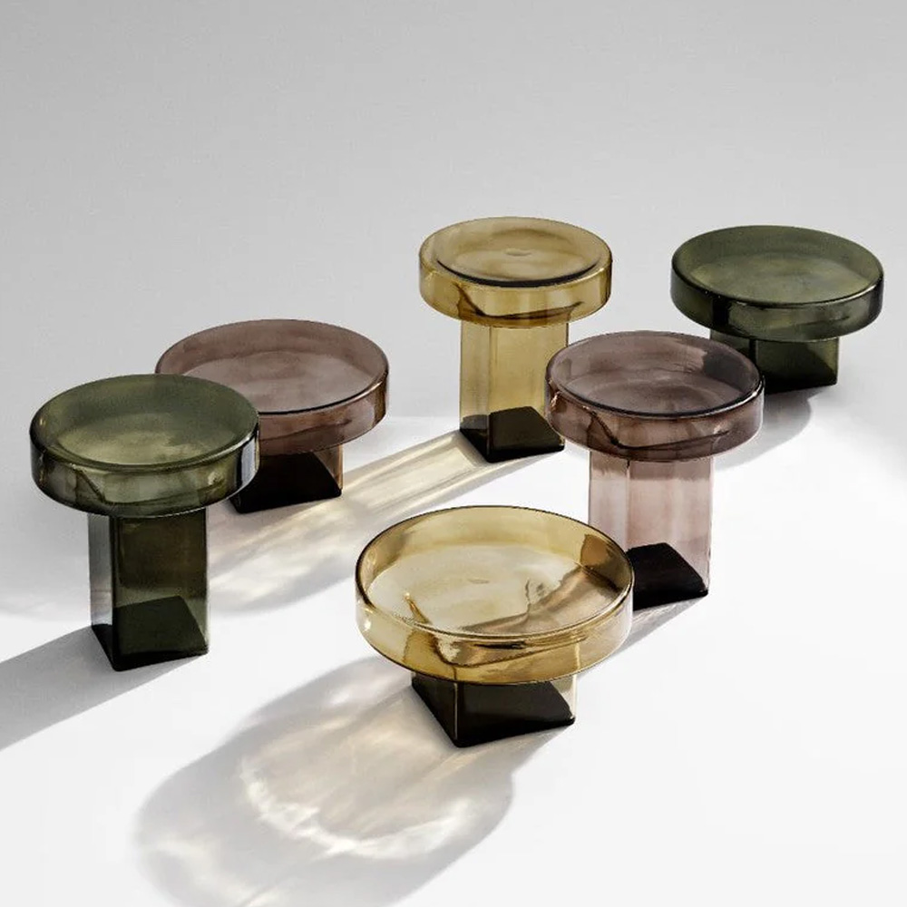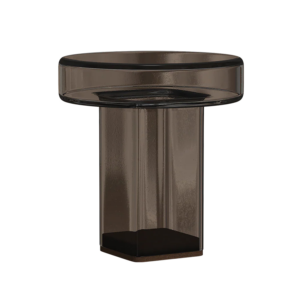 Naked 系列以吹製玻璃打造出極致純粹的桌几設計,將物件化為透明的雕塑。沒有隱藏結構,也沒有多餘層次,僅以單一通透的輪廓呈現其形與質,彷彿讓光線成為結構的一部分。加厚的圓形桌面置於柱狀方形基座之上,造型明確而果斷;玻璃材質則為整體注入輕盈氣息,使體量感被柔化,只留下優雅的線條。