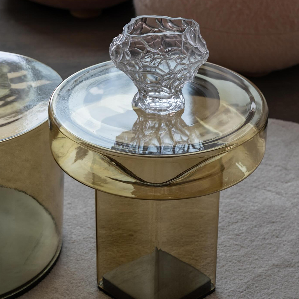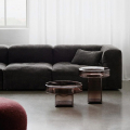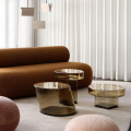 Naked 系列包含咖啡桌與邊桌兩款式,並提供 Smoke(煙棕色)Green(綠色)與 Amber(琥珀色)三種柔和光澤色調。透明結構將整件作品的形態一覽無遺,透出坦率的材質語言,也展現一種將一切呈現於光下的美感。