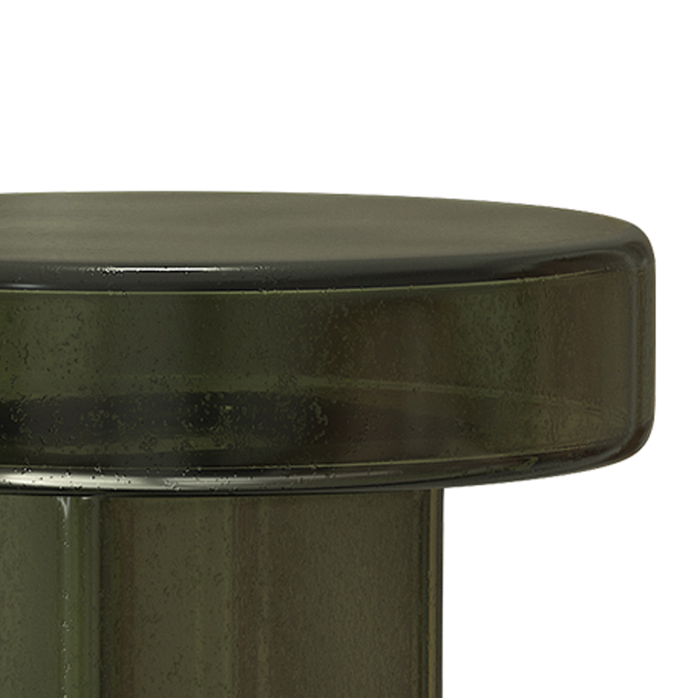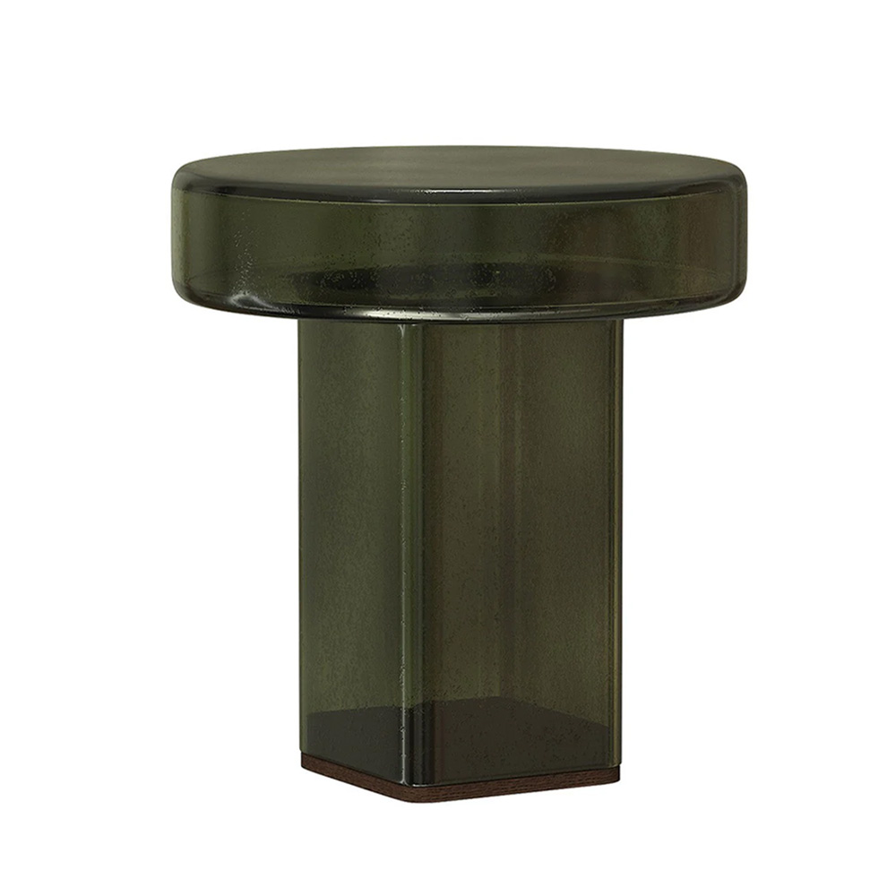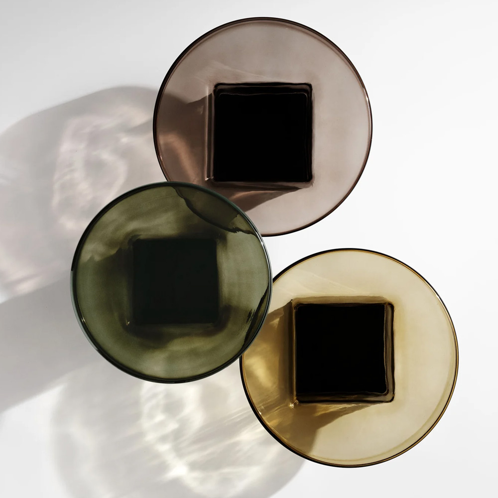 每一張桌几皆由單一吹製玻璃成形。工序始於熔融玻璃注入特製模具,經由氣體吹塑而獲得飽滿體積。脫模後,玻璃會先經回火處理,再於底部精準切割,以確保穩固的立面。內部塗漆為顏色提供長久保護,而外層則維持玻璃原有的平滑觸感。最終,桌几安置於黑橡木底座上,材質之間的對比讓透明體量更顯立體與沉穩。由於手工吹製特性,厚度微差或氣泡皆可能自然生成,亦成為每件作品獨有的印記。