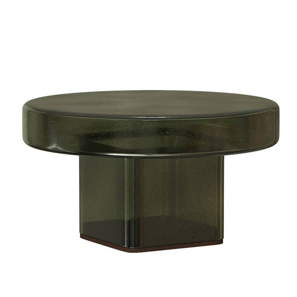 每一張桌几皆由單一吹製玻璃成形。工序始於熔融玻璃注入特製模具,經由氣體吹塑而獲得飽滿體積。脫模後,玻璃會先經回火處理,再於底部精準切割,以確保穩固的立面。內部塗漆為顏色提供長久保護,而外層則維持玻璃原有的平滑觸感。最終,桌几安置於黑橡木底座上,材質之間的對比讓透明體量更顯立體與沉穩。由於手工吹製特性,厚度微差或氣泡皆可能自然生成,亦成為每件作品獨有的印記。