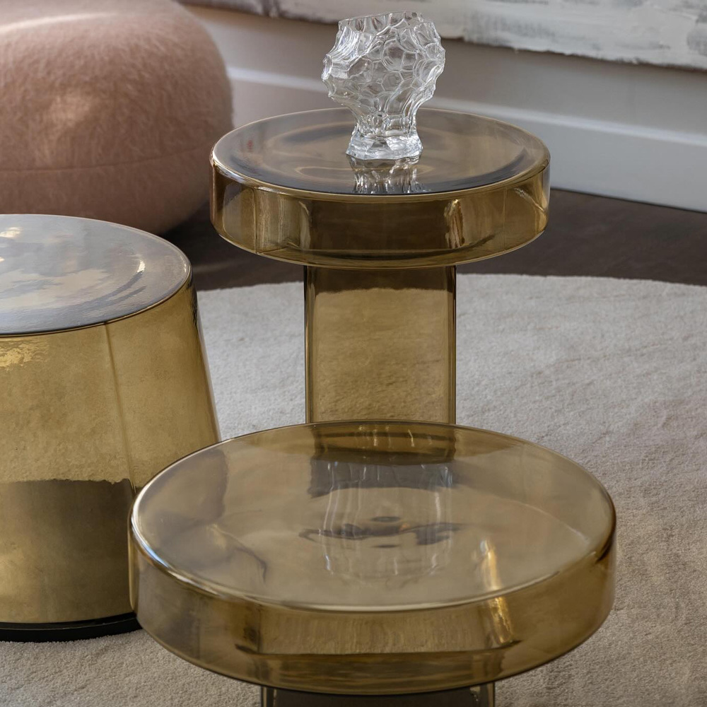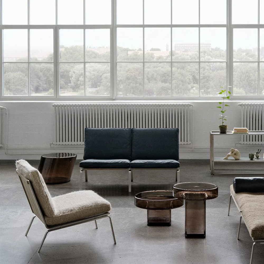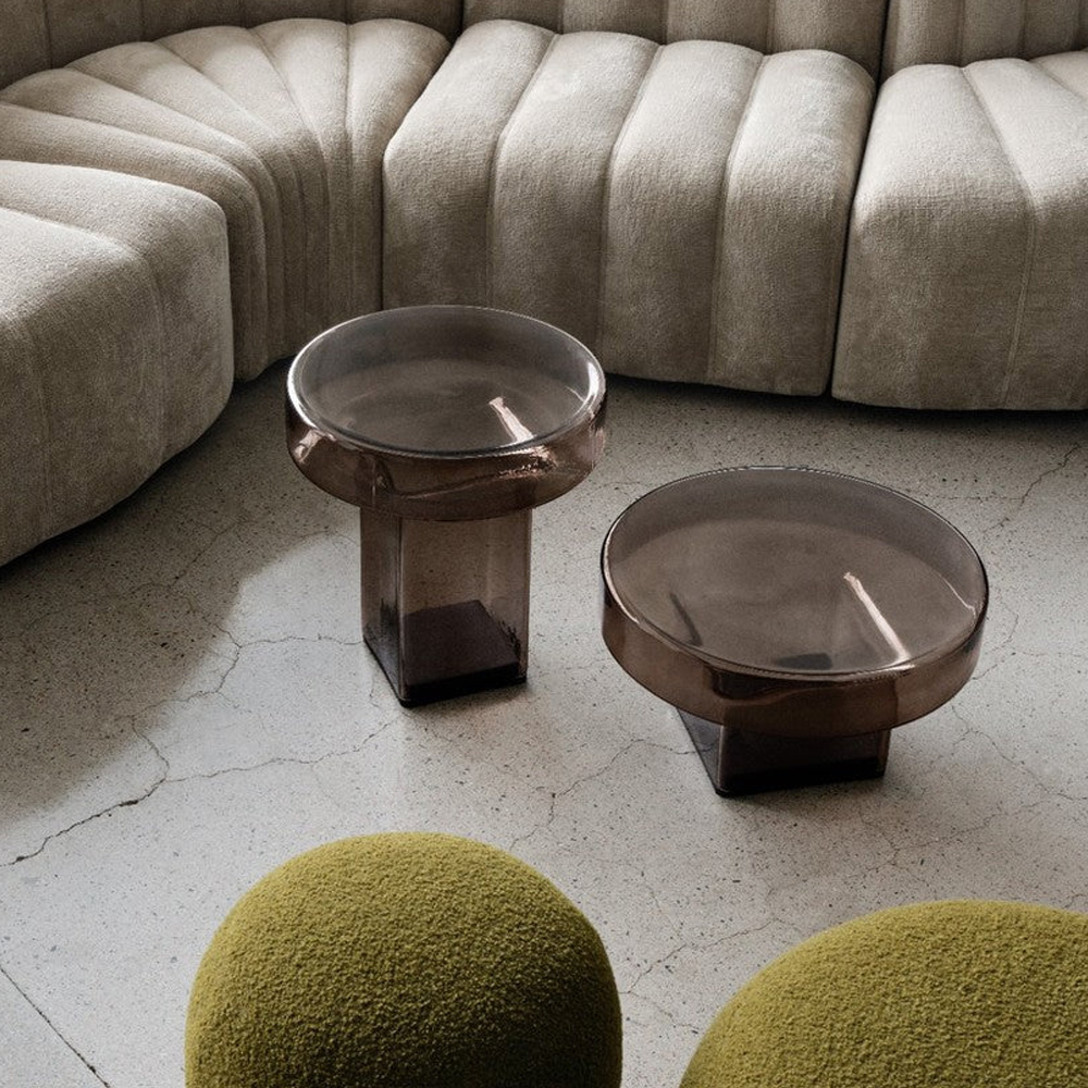 Naked 系列包含咖啡桌與邊桌兩款式,並提供 Smoke(煙棕色)Green(綠色)與 Amber(琥珀色)三種柔和光澤色調。透明結構將整件作品的形態一覽無遺,透出坦率的材質語言,也展現一種將一切呈現於光下的美感。