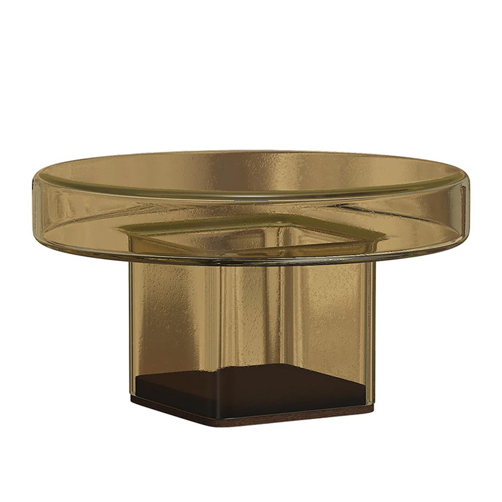 Naked 系列以吹製玻璃打造出極致純粹的桌几設計,將物件化為透明的雕塑。沒有隱藏結構,也沒有多餘層次,僅以單一通透的輪廓呈現其形與質,彷彿讓光線成為結構的一部分。加厚的圓形桌面置於柱狀方形基座之上,造型明確而果斷;玻璃材質則為整體注入輕盈氣息,使體量感被柔化,只留下優雅的線條。