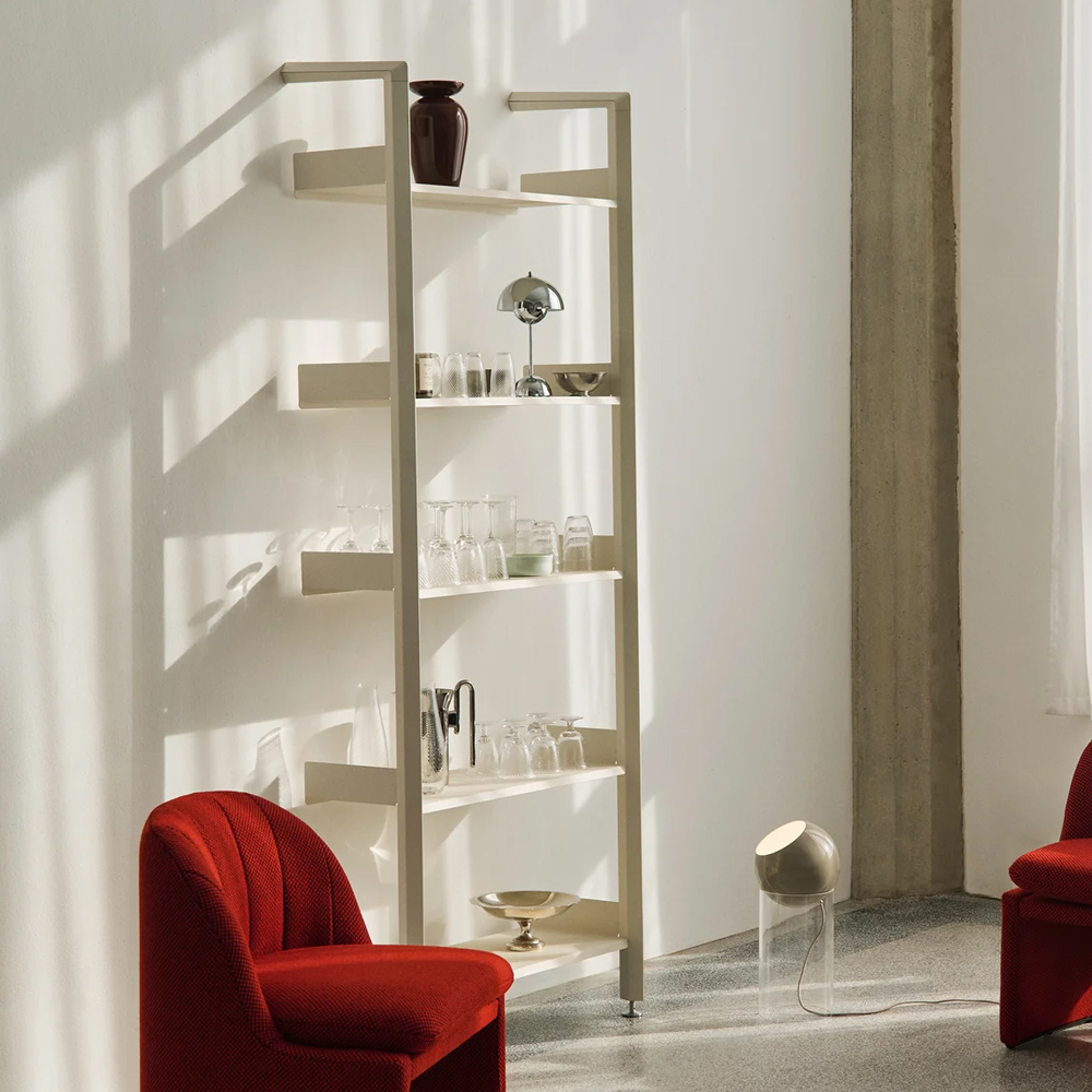 Rombe 是 Industrial Facility 為 &Tradition 打造的模組化書架系統,以「雕塑性的實用性」為核心精神,在秩序與溫度之間取得極其細膩的平衡。它以安靜而堅實的結構,成為生活物件的舞台:常用的書籍、旅行途中帶回的收藏、工作日常需要的物品,都能在這套系統中找到恰如其分的位置。Rombe 的形式靈活而結構不妥協,延續了現代家具對效率、韌性與美感的追求,也呼應了當代生活不斷變動的節奏。