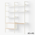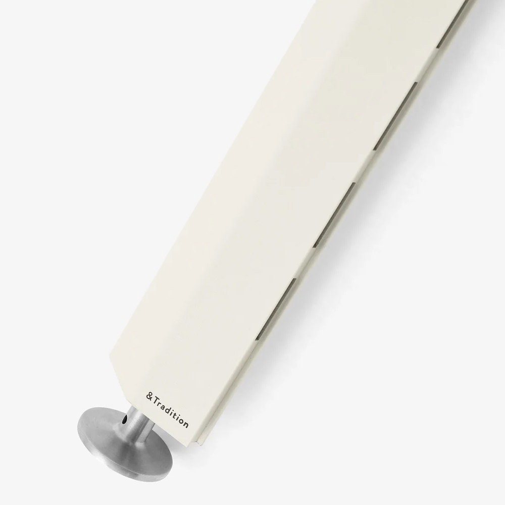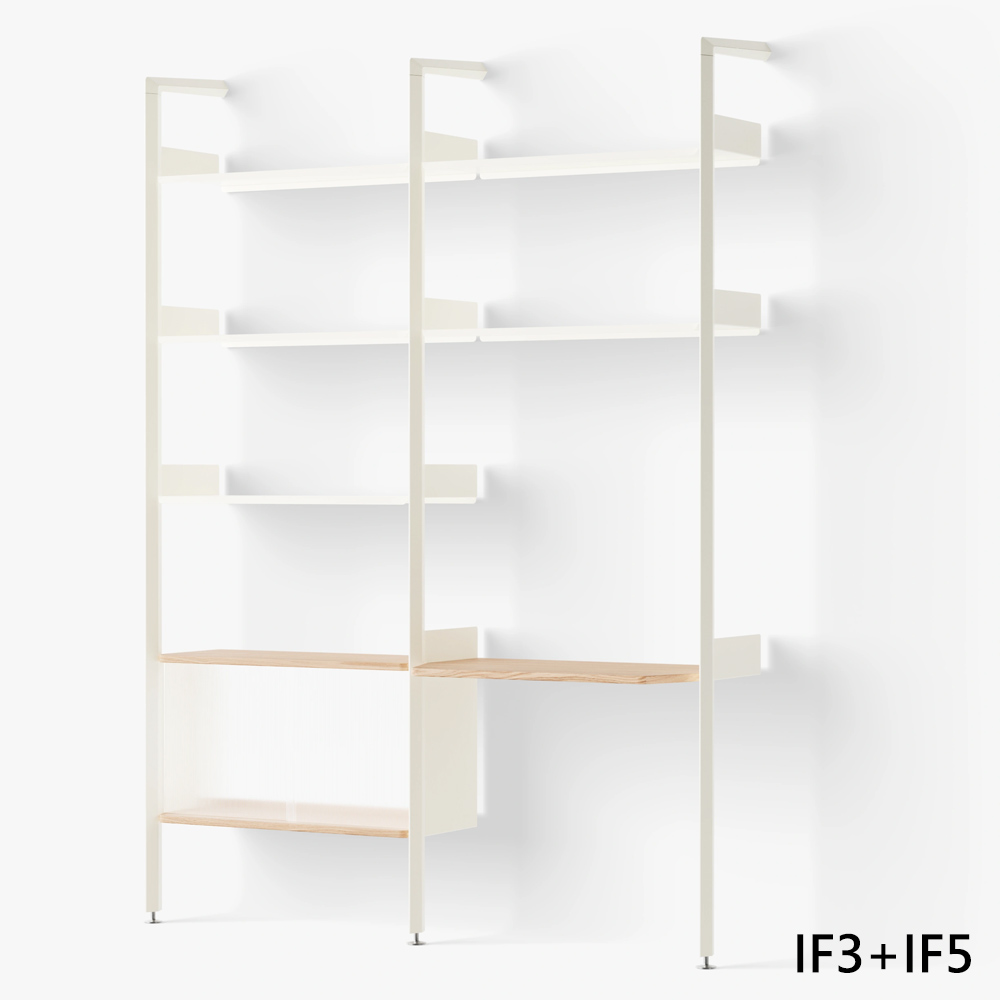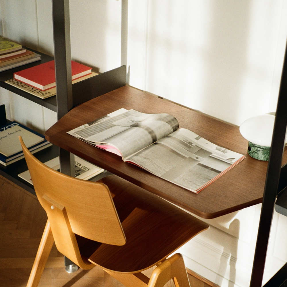 Industrial Facility 與 &Tradition 的合作,是品牌在產品譜系中的一次重要拓展。Industrial Facility 工作室以其冷靜精準的技術語彙聞名,在此專案中,他們以極克制的方式延展模組系統的潛力;Rombe 的 11 種核心配置,從單向、雙向到三向的基礎模組,再延伸出不同的層板、桌面與櫃體組合,使選擇過程清晰而直覺。其命名源自結構中垂直支架意外呈現的菱形輪廓一個非刻意而自然生成的形體,因適合承重、比例良好,而成為整體語言的一部分。