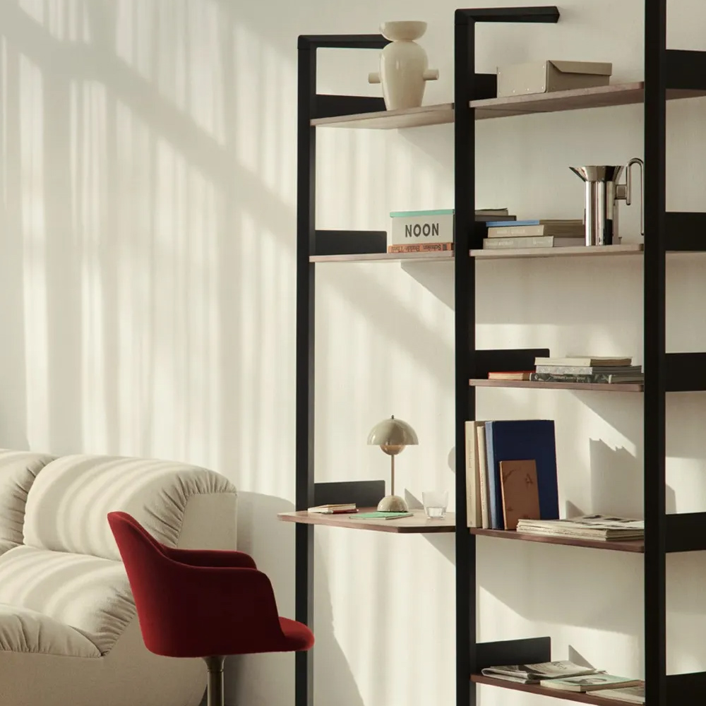 Rombe 是 Industrial Facility 為 &Tradition 打造的模組化書架系統,以「雕塑性的實用性」為核心精神,在秩序與溫度之間取得極其細膩的平衡。它以安靜而堅實的結構,成為生活物件的舞台:常用的書籍、旅行途中帶回的收藏、工作日常需要的物品,都能在這套系統中找到恰如其分的位置。Rombe 的形式靈活而結構不妥協,延續了現代家具對效率、韌性與美感的追求,也呼應了當代生活不斷變動的節奏。