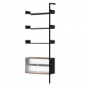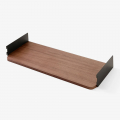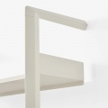 Rombe 安裝方式亦展現了 Industrial Facility 對細節的執著:整組系統僅以四個接點固定於牆面,兩個位於最上端的壁掛結構,另兩個隱藏在中段,使牆體保持乾淨完整。層板、桌面與櫃體則與直立支架連結,同時與牆面保持適度距離,不僅留出線材通道,也讓整體視覺更顯輕盈。無論是地坪微幅不平、牆面深度的差異,或多組 bay 串接後可能產生的偏移,Rombe 都能在安裝過程中以精準調節達成完美對齊。甚至連附上的六角扳手都有專屬收納空間,隱藏於支架內部,使後續拆裝或搬遷更為便利,也讓整個系統具備長期陪伴不同場域的可能性。