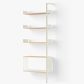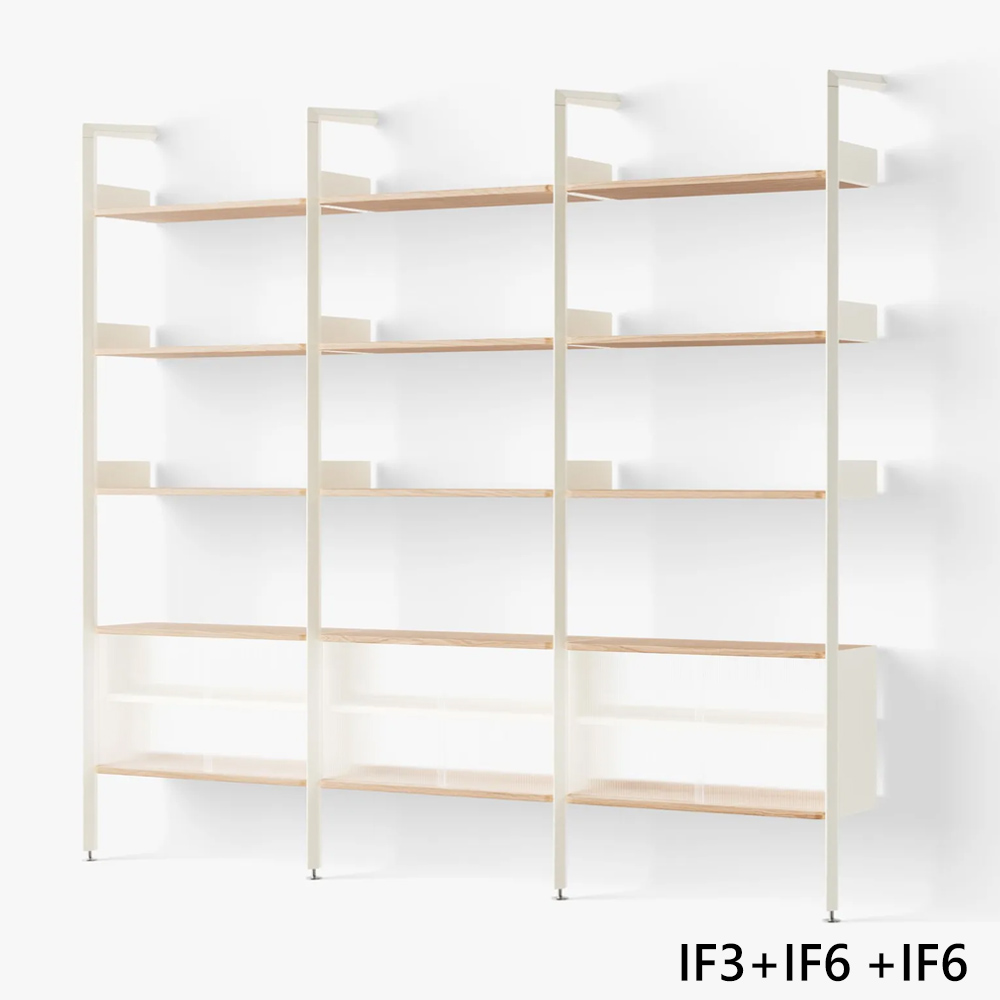 Industrial Facility 與 &Tradition 的合作,是品牌在產品譜系中的一次重要拓展。Industrial Facility 工作室以其冷靜精準的技術語彙聞名,在此專案中,他們以極克制的方式延展模組系統的潛力;Rombe 的 11 種核心配置,從單向、雙向到三向的基礎模組,再延伸出不同的層板、桌面與櫃體組合,使選擇過程清晰而直覺。其命名源自結構中垂直支架意外呈現的菱形輪廓一個非刻意而自然生成的形體,因適合承重、比例良好,而成為整體語言的一部分。