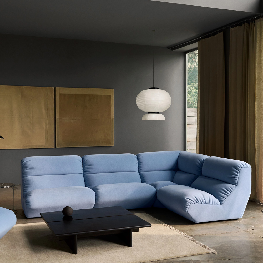 Anderssen & Voll 為 &Tradition 帶來 Hi Lo 一款以擁抱般的姿態迎接身體的沙發。它挑戰傳統休憩座椅的比例,以兩件式模組結構塑造充沛的舒適度與富有動態張力的輪廓。厚實而貼合身形的包覆式坐墊,是這件作品的靈魂;座面低伏、背部高聳,從側面勾勒出近似 C 形的弧度,引導身體自然沉入柔軟的倚靠中,形成一種近乎放任式的放鬆狀態。