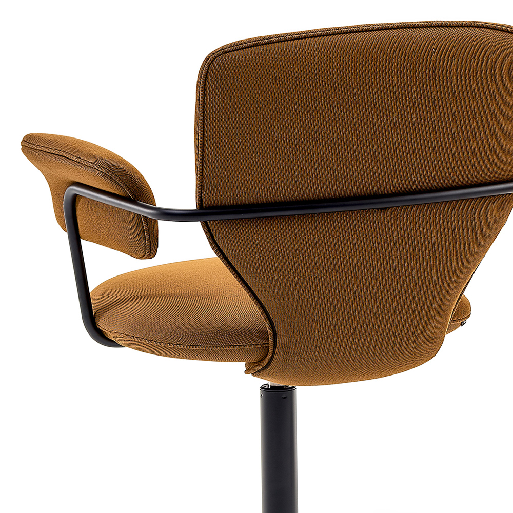 Planta 的座感輕鬆而支持性十足,弧形背靠輕柔地擁抱身體,鼓勵一種放鬆卻保持專注的坐姿。扶手的設計宛如從座椅本體生長而出的延伸,線條流暢,視覺上乾淨而統一。金屬結構沿著背部輪廓優雅地收邊,延伸為包覆性的扶手,並搭配柔軟墊層,既提升舒適度,也強化了整體造型的連貫與精緻。