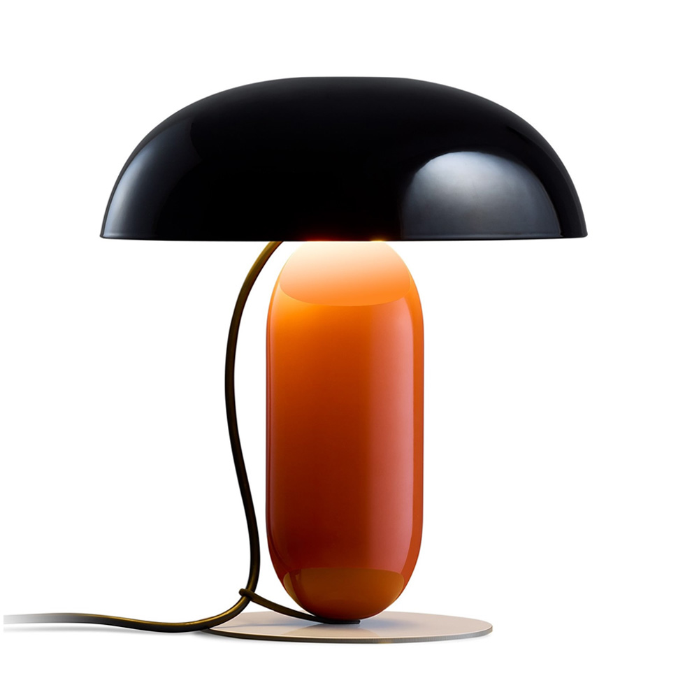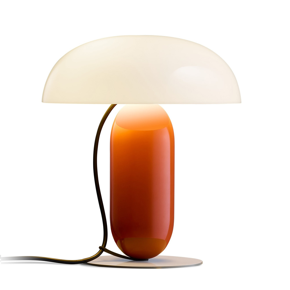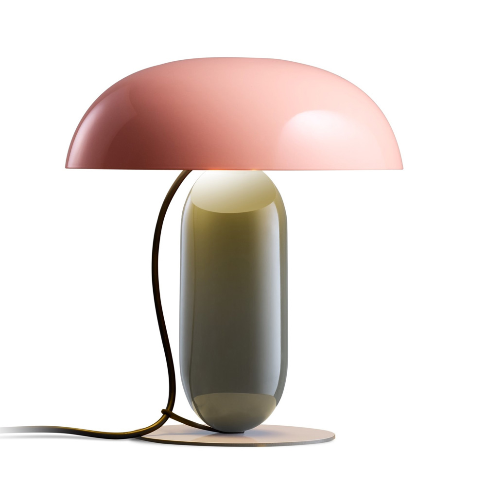 電源線亦被納入設計整體之中,自燈頂自然垂落,並透過固定夾引導與定位,兼具機能性與視覺層次。Gambosa 是一款被重新定義的桌燈,卻在造型比例與色彩語言上展現鮮明的當代性,適合作為書桌、床邊或公共空間中的設計亮點。
