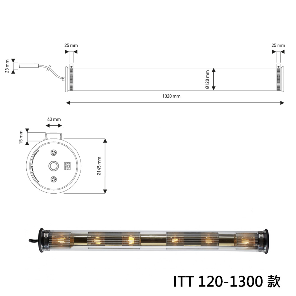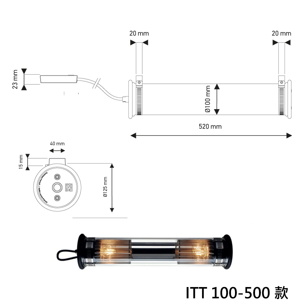 ITT 100-500 款: 直徑10 x 高52 cm/ 2顆 E14 5W LED 燈泡