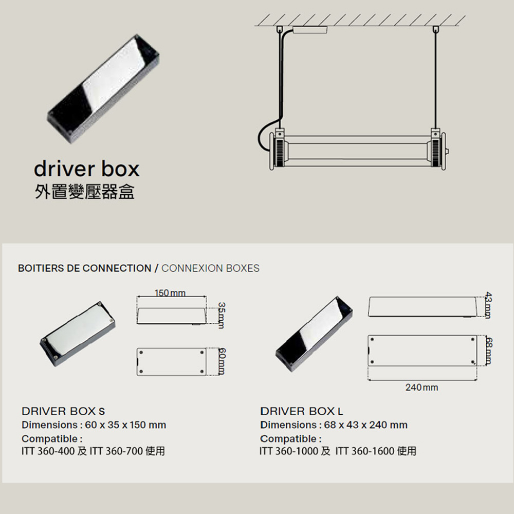 ITT 360°1000 款: 直徑7 x 高102 cm / 內建20W 2700K