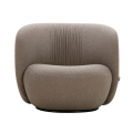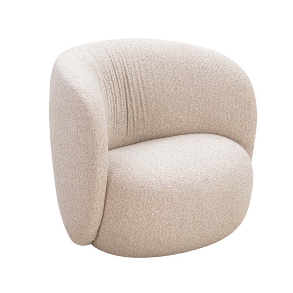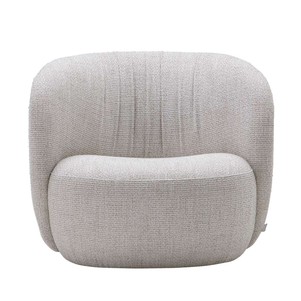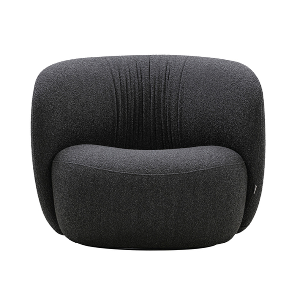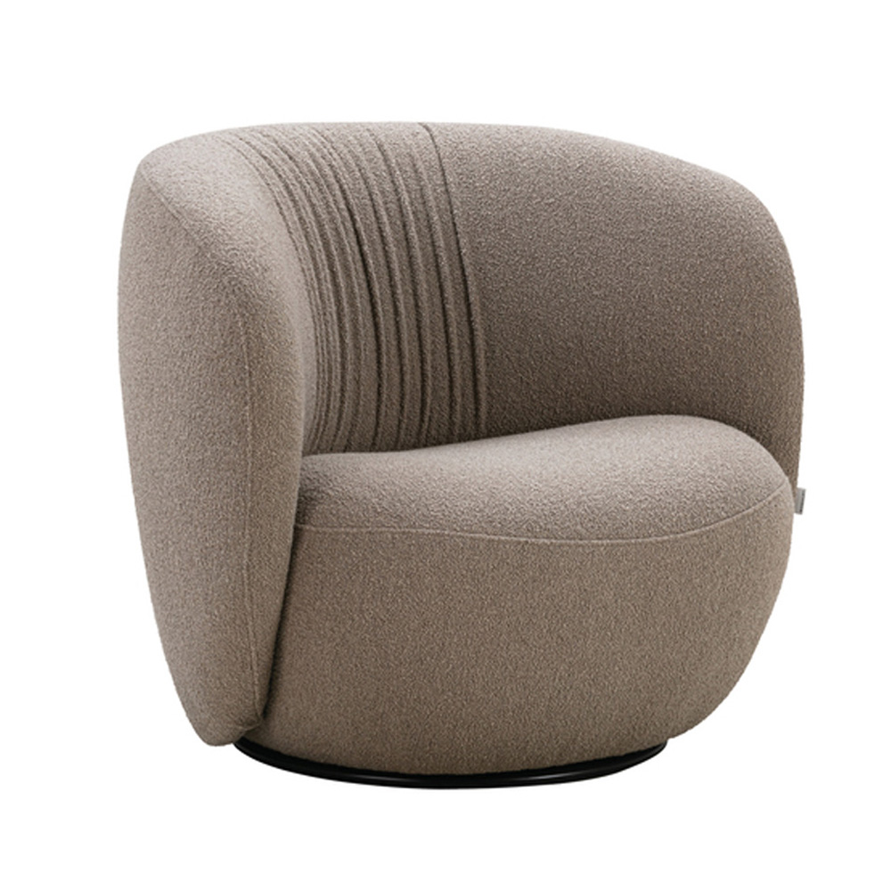 設計靈感來自 Ovata 樹葉的包覆輪廓,椅身以豐厚坐墊構成,線條圓潤且富有張力。隱藏式橡木底座使視覺焦點完全落在座椅本體,突顯布料與形體的豐富表情。坐感上,柔軟的襯墊自然承托身體曲線,提供放鬆且穩定的支撐感受。