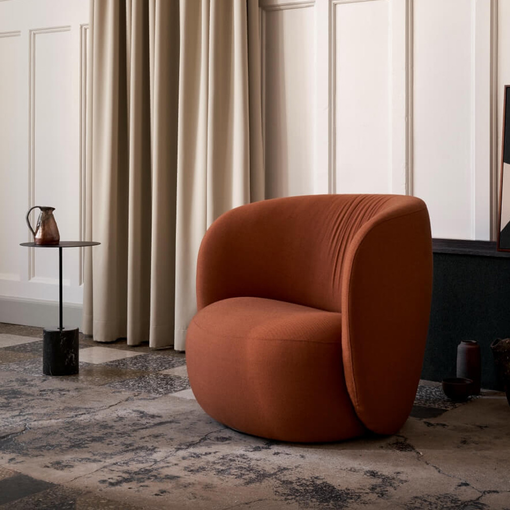 Ovata 提供多種布料與皮革選擇,觸感與色彩細節皆展現 Wendelbo 對材質的講究。適合配置於客廳沙發區、臥室一隅,或單獨搭配邊几與立燈,形成安靜而專注的休憩角落。