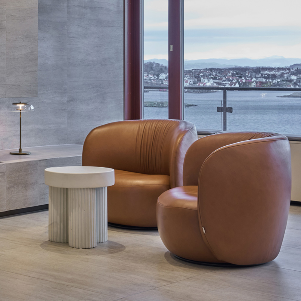 Ovata 系列由瑞典 Note Design Studio 設計,是一款兼具雕塑感與舒適性的座椅作品。本體造型飽滿柔和,如同自然生長的形體,本身即具有強烈的視覺存在感,能為現代室內空間增添溫潤而精緻的層次。