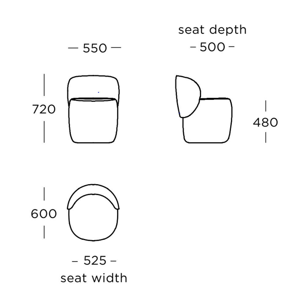 作為 Ovata 系列的自然延伸,Ovata Compact 單椅將靈感源自同名植物的沉穩生命力,轉化為更為精巧而親切的座椅形態。全椅採完整包覆式設計,線條圓潤流暢,背靠細緻的摺線自然銜接至座面,營造出貼合身體的包覆感與安定的乘坐體驗。