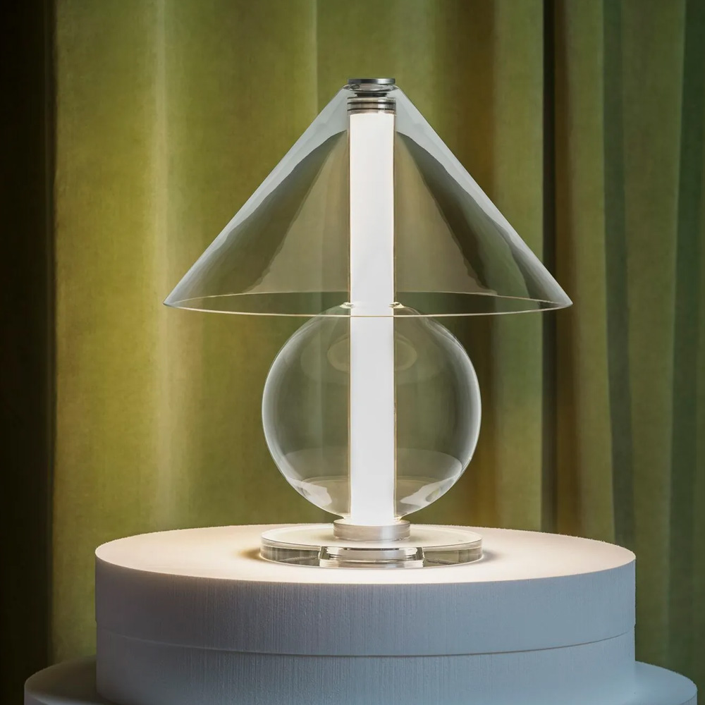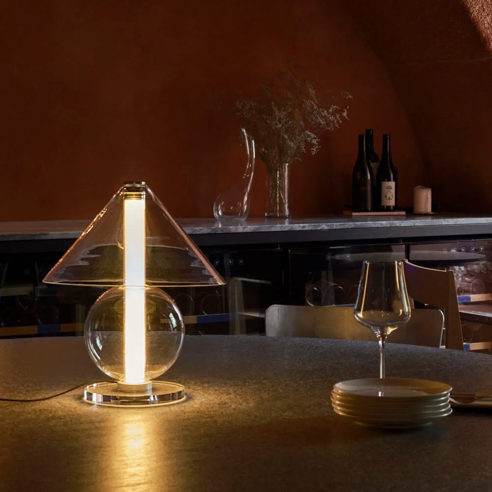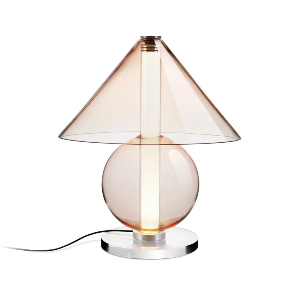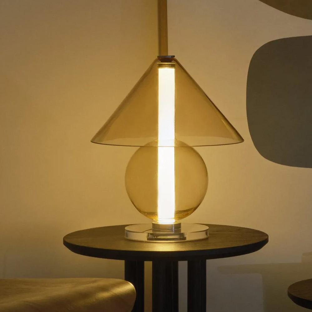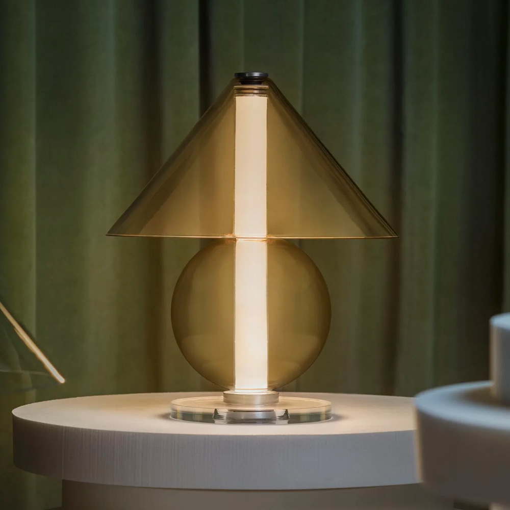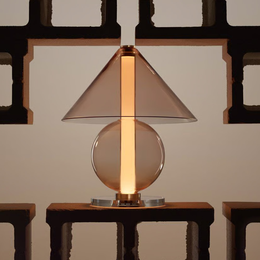 設計師 Jaume Ramírez 著迷於永恆的設計,在這種原型桌燈形象中,燈罩將光線分散到各個方向,而這也成為設計師反思和實驗的起點,他以玻璃這個媒材將一個圓錐體和一個可容納光的圓柱體,在經優化所組合而成的幾何流線形體中,圓柱體遮罩了一些溫暖、漫射和漸變的光線,而藉由玻璃自身的語彙,讓光精緻的展露在每一個穿透間。Fragile 桌燈是對檯燈這具有悠久歷史的燈具致敬,隨著玻璃等材料的應用,再次以其精緻的形式為我們帶來驚喜。
