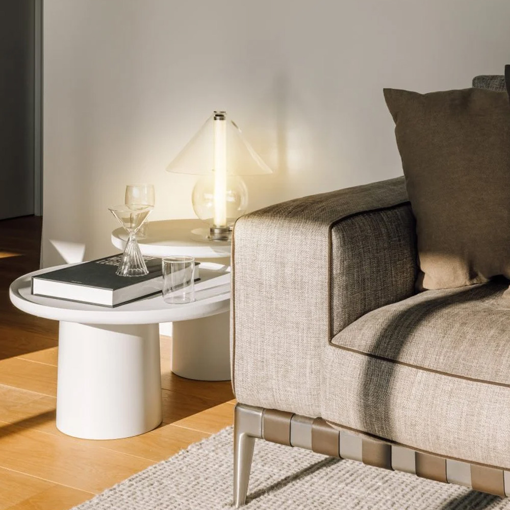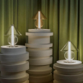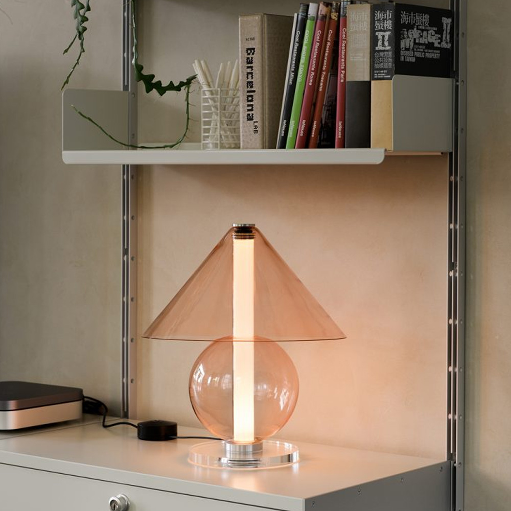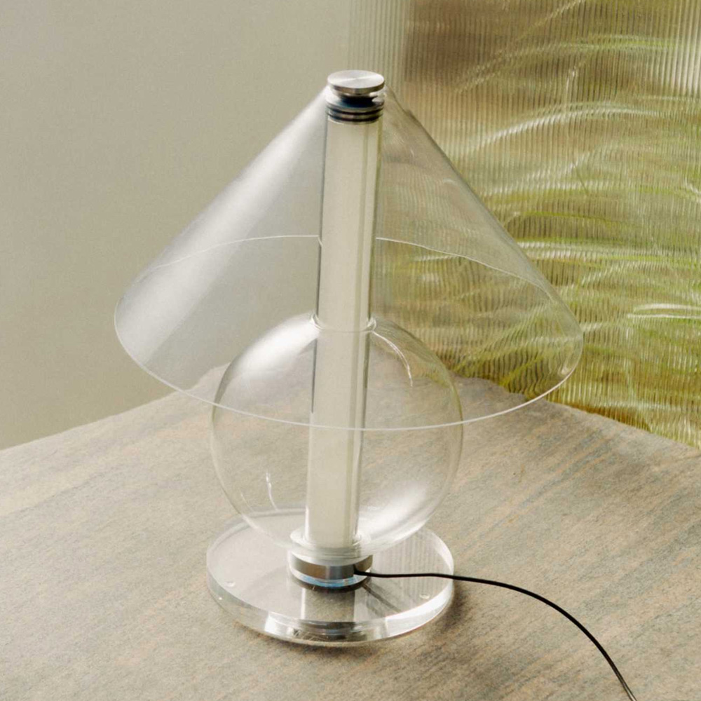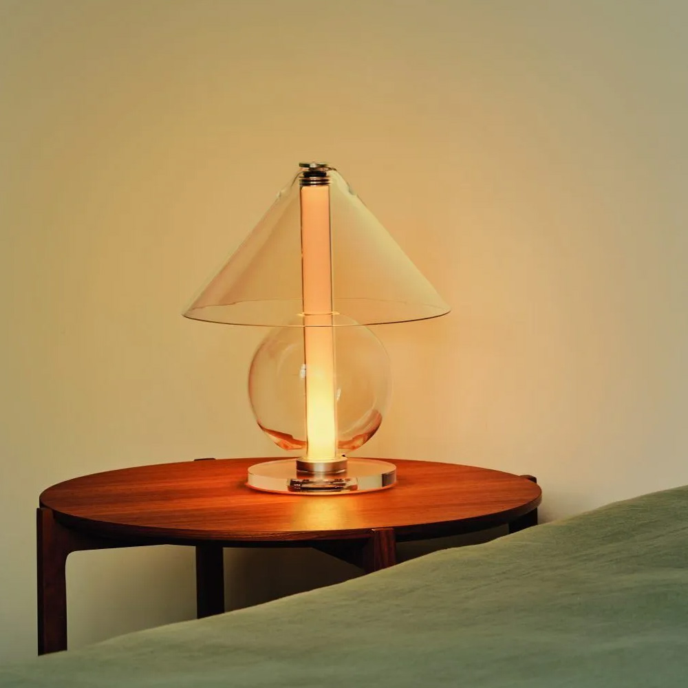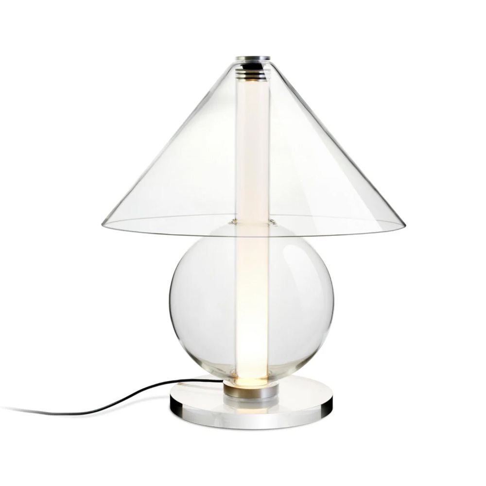 設計師 Jaume Ramírez 著迷於永恆的設計,在這種原型桌燈形象中,燈罩將光線分散到各個方向,而這也成為設計師反思和實驗的起點,他以玻璃這個媒材將一個圓錐體和一個可容納光的圓柱體,在經優化所組合而成的幾何流線形體中,圓柱體遮罩了一些溫暖、漫射和漸變的光線,而藉由玻璃自身的語彙,讓光精緻的展露在每一個穿透間。Fragile 桌燈是對檯燈這具有悠久歷史的燈具致敬,隨著玻璃等材料的應用,再次以其精緻的形式為我們帶來驚喜。
