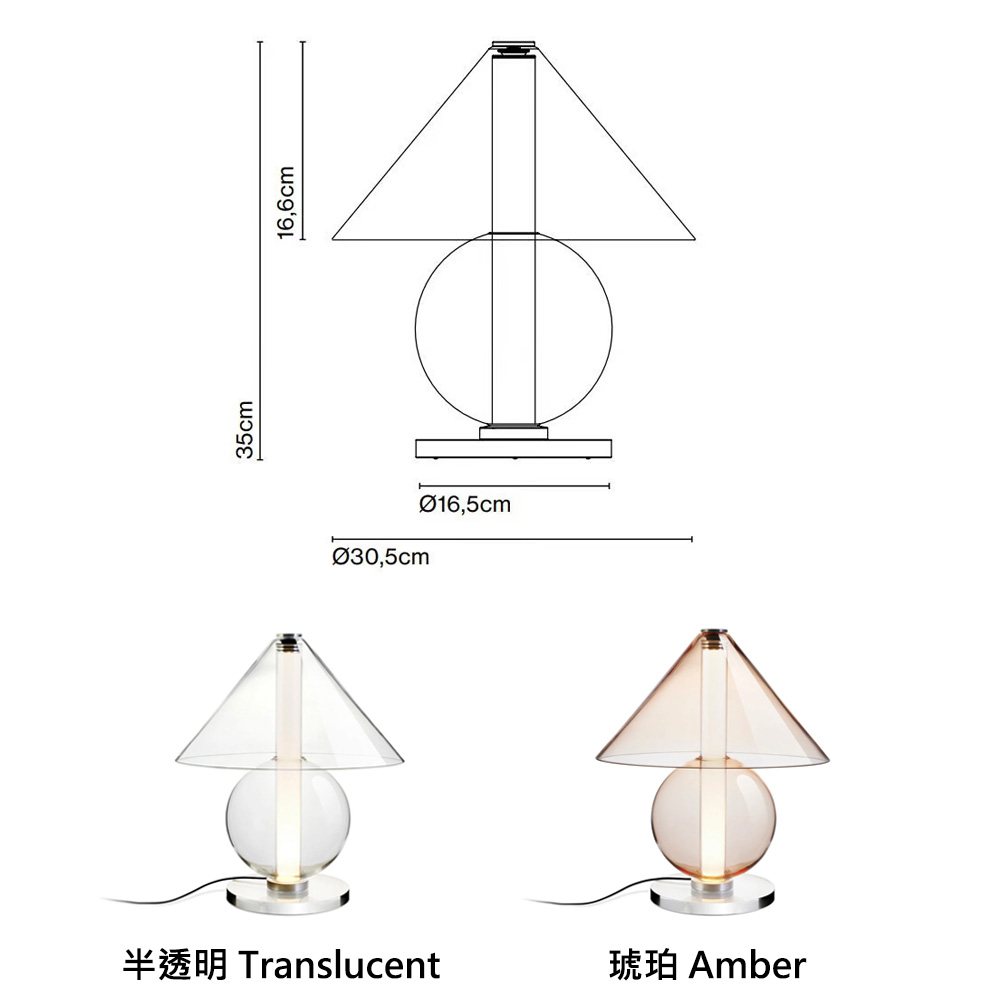 材質: 燈罩: 吹製玻璃 / 底座: 甲基丙烯酸酯