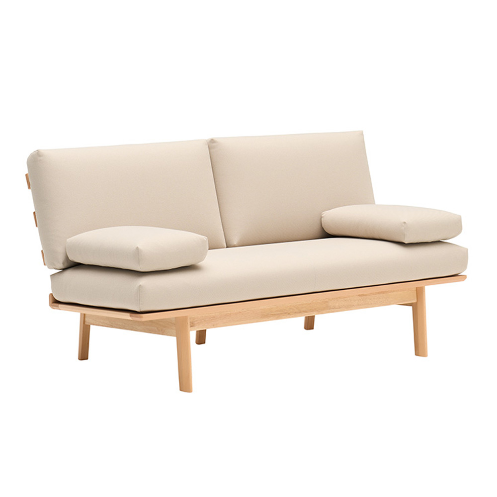 扶手墊為置放式設計,若坐深覺得過深,也可當作腰靠使用,依不同坐姿自由調整。拿掉扶手,更適合躺臥放鬆將扶手墊移除後,可完整使用沙發寬度,躺著休息更自在。由於座面為單一整片座墊,也可作為簡易沙發床使用。