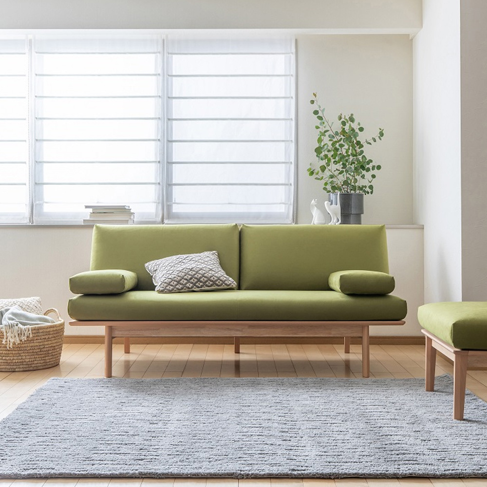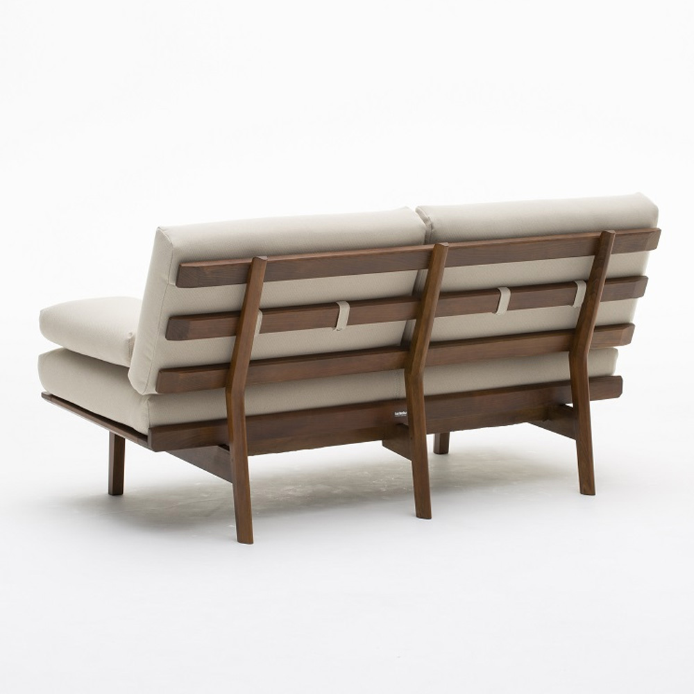 背靠高度刻意降低,視覺上更加清爽,也很適合當作空間中的輕隔間使用。即使擺在房間中央,也不會有壓迫感,讓整個空間看起來更通透。