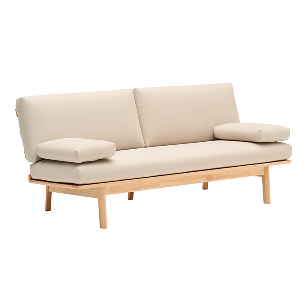 扶手墊為置放式設計,若坐深覺得過深,也可當作腰靠使用,依不同坐姿自由調整。拿掉扶手,更適合躺臥放鬆將扶手墊移除後,可完整使用沙發寬度,躺著休息更自在。由於座面為單一整片座墊,也可作為簡易沙發床使用。