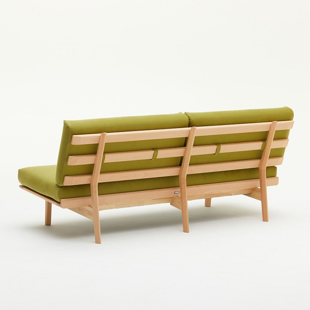背靠高度刻意降低,視覺上更加清爽,也很適合當作空間中的輕隔間使用。即使擺在房間中央,也不會有壓迫感,讓整個空間看起來更通透。
