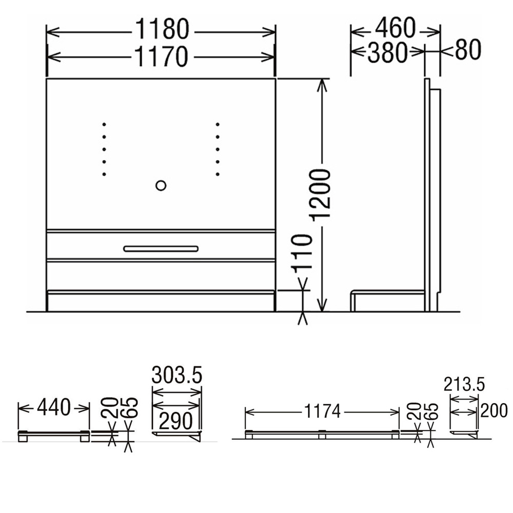 長層架: 寬117 x 深21.3 x 高6.5 cm