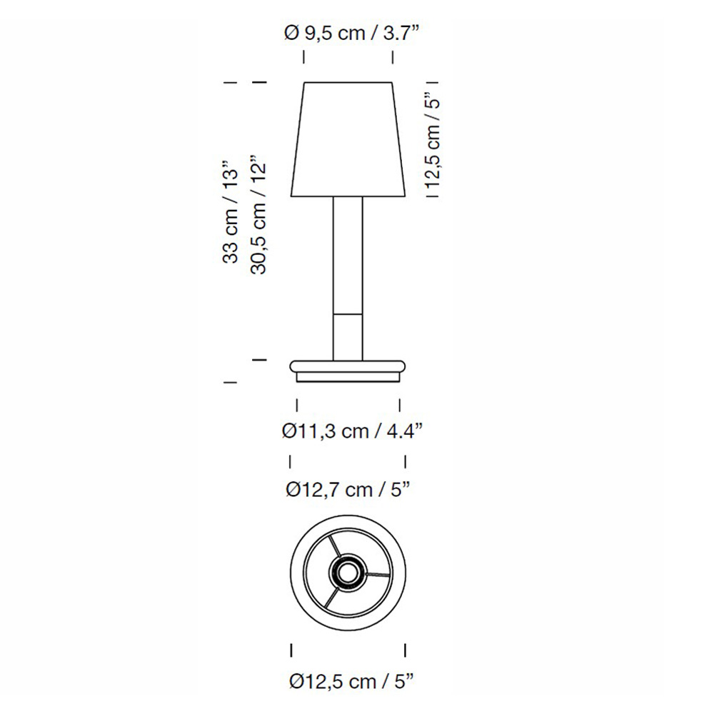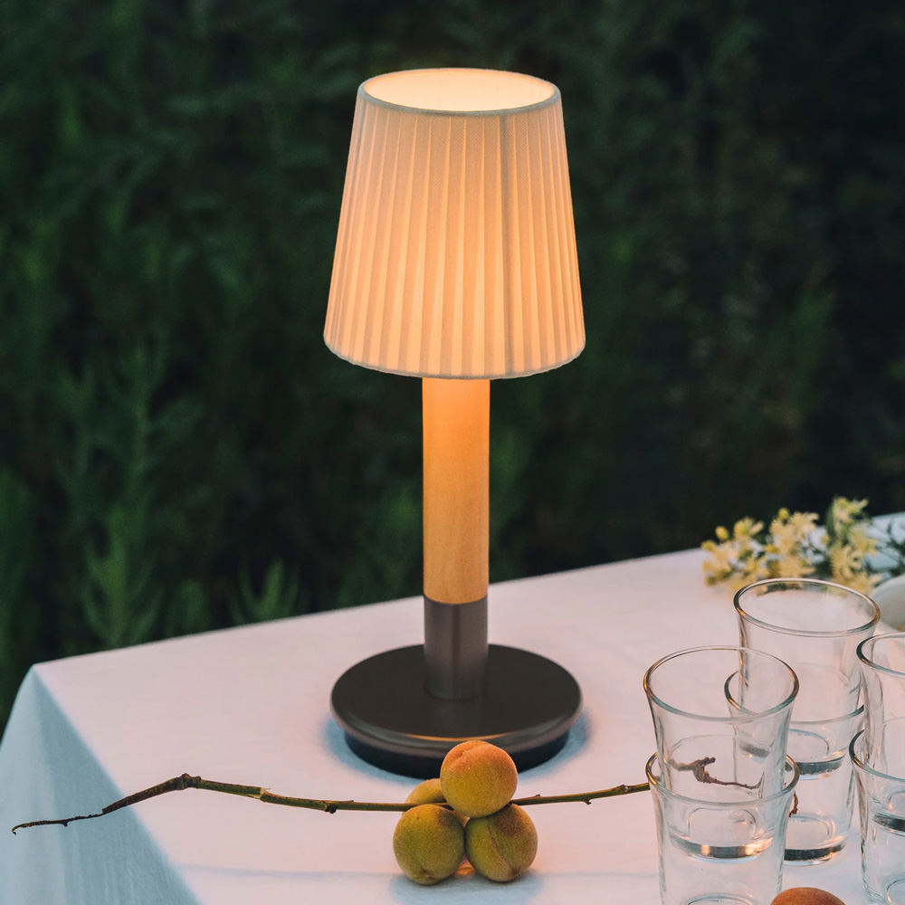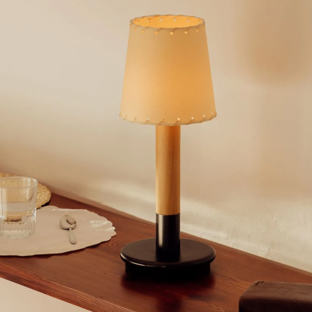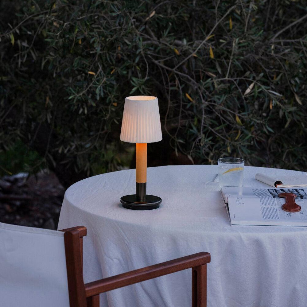 Batería 版本採用觸控式操作,輕觸即可開關並調整兩段亮度,直覺又便利。內建電池設計讓燈具不受電源限制,適合擺放於餐桌、床邊、露台或半戶外空間,亦可多盞搭配使用,形成層次分明的光環境。隨附接觸式充電器,充電時間約 5 小時,兼顧美感、實用性與高度靈活的使用情境。